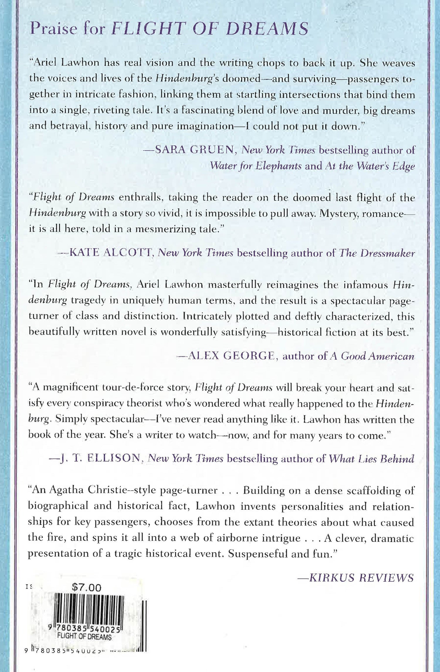 On the evening of May 3rd, 1937, ninety-seven people board the Hindenburg for its final, doomed flight to Lakehurst, New Jersey. Among them are a frightened stewardess who is not what she seems; the steadfast navigator determined to win her heart; a naive cabin boy eager to earn a permanent spot on the world's largest airship; an impetuous journalist who has been blacklisted in her native Germany; and an enigmatic American businessman with a score to settle. Over the course of three hazy, champagne-soaked days their lies, fears, agendas, and hopes for the future are revealed. Flight of Dreams is a fiercely intimate portrait of the real people on board the last flight of the Hindenburg. Behind them is the gathering storm in Europe and before them is looming disaster. But for the moment they float over the Atlantic, unaware of the inexorable, tragic fate that awaits them. Brilliantly exploring one of the most enduring mysteries of the twentieth century, Flight of Dreams is that rare novel with spellbinding plotting that keeps you guessing till the last page and breathtaking emotional intensity that stays with you long after.