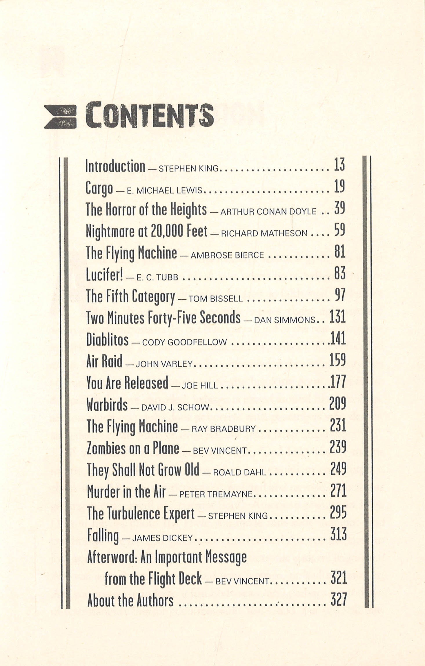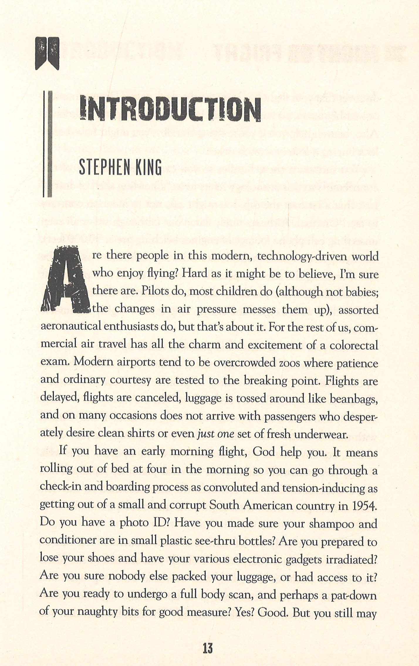 Fasten your seatbelts for an anthology of turbulent tales curated by Stephen King and Bev Vincent. This exciting new collection, perfect for airport or aeroplane reading, includes an original introduction and story notes for each story by Stephen King, and brand new stories from Stephen King and Joe Hill.Stephen King hates to fly.Now he and co-editor Bev Vincent would like to share this fear of flying with you.Welcome to Flight or Fright, an anthology about all the things that can go horribly wrong when you're suspended six miles in the air, hurtling through space at more than 500 mph and sealed up in a metal tube (like - gulp! - a coffin) with hundreds of strangers. All the ways your trip into the friendly skies can turn into a nightmare, including some we'll bet you've never thought of before... but now you will the next time you walk down the jetway and place your fate in the hands of a total stranger.Featuring brand new stories by Joe Hill and Stephen King, as well as fourteen classic tales and one poem from the likes of Richard Matheson, Ray Bradbury, Roald Dahl, Dan Simmons, and many others, Flight or Fright is, as King says, "ideal airplane reading, especially on stormy descents... Even if you are safe on the ground, you might want to buckle up nice and tight."