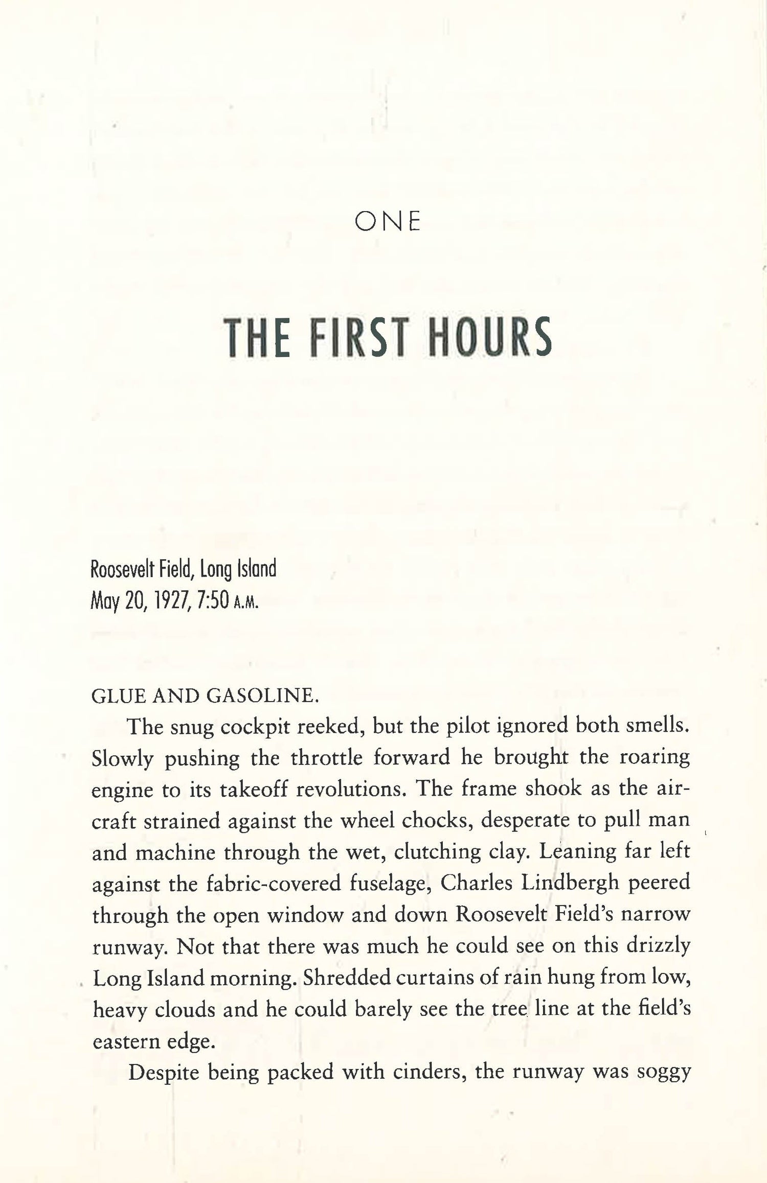 On the rainy morning of May 20, 1927, a little-known American pilot named Charles A. Lindbergh climbed into his single-engine monoplane, Spirit of St. Louis, and prepared to take off from a small airfield on Long Island, New York. Despite his inexperience—the twenty-five-year-old Lindbergh had never before flown over open water—he was determined to win the $25,000 Orteig Prize promised since 1919 to the first pilot to fly nonstop between New York and Paris, a terrifying adventure that had already claimed six men’s lives. Ahead of him lay a 3,600-mile solo journey across the vast north Atlantic and into the unknown; his survival rested on his skill, courage, and an unassuming little aircraft with no front window.