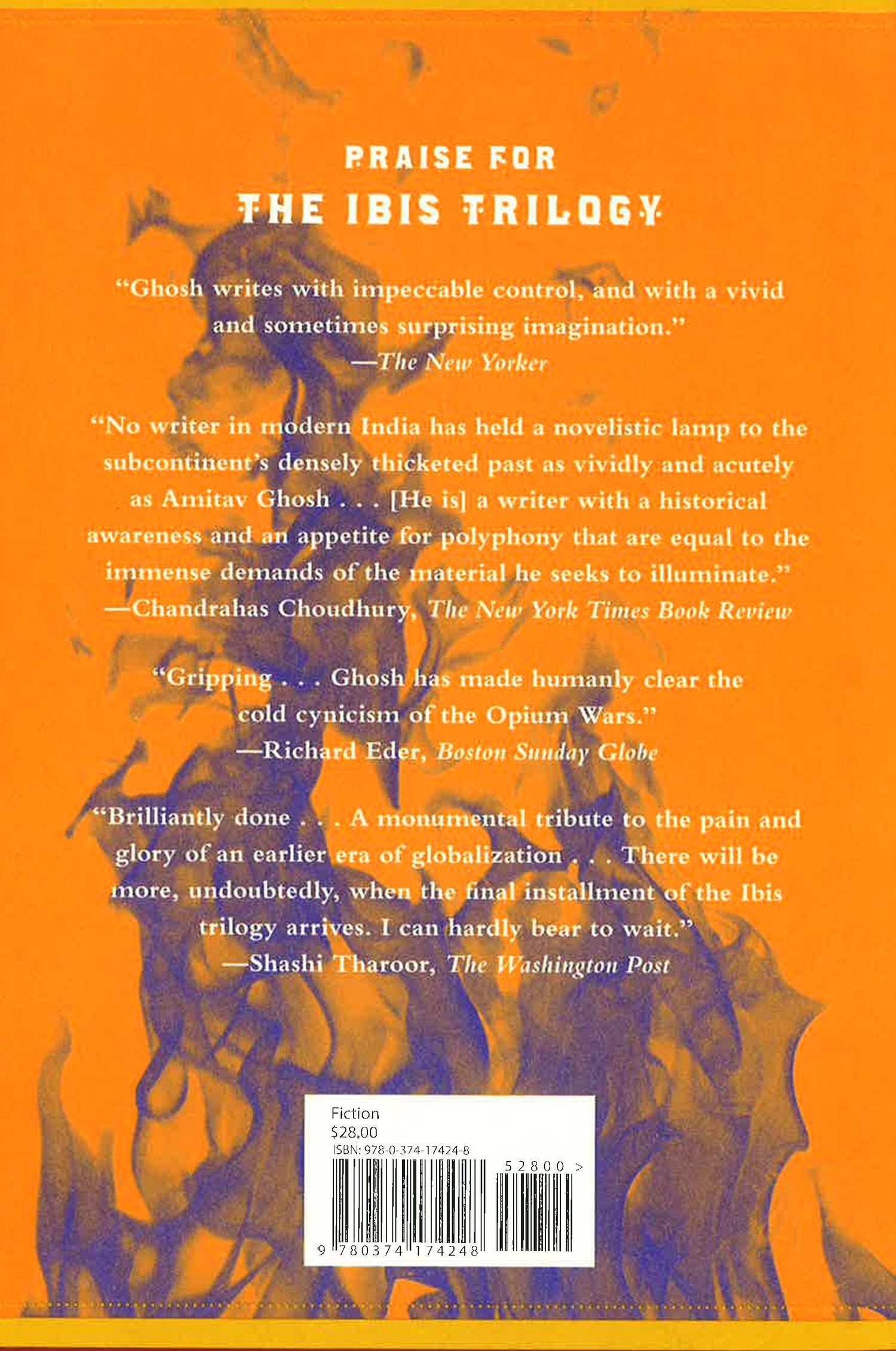 The stunningly vibrant final novel in the bestselling Ibis Trilogy It is 1839 and China has embargoed the trade of opium, yet too much is at stake in the lucrative business and the British Foreign Secretary has ordered the colonial government in India to assemble an expeditionary force for an attack to reinstate the trade. Among those consigned is Kesri Singh, a soldier in the army of the East India Company. He makes his way eastward on the Hind, a transport ship that will carry him from Bengal to Hong Kong. Along the way, many characters from the Ibis Trilogy come aboard, including Zachary Reid, a young American speculator in opium futures, and Shireen, the widow of an opium merchant whose mysterious death in China has compelled her to seek out his lost son. The Hind docks in Hong Kong just as war breaks out and opium "pours into the market like monsoon flood." From Bombay to Calcutta, from naval engagements to the decks of a hospital ship, among embezzlement, profiteering, and espionage, Amitav Ghosh charts a breathless course through the culminating moment of the British opium trade and vexed colonial history. With all the verve of the first two novels in the trilogy, Flood of Fire completes Ghosh's unprecedented reenvisioning of the nineteenth-century war on drugs. With remarkable historic vision and a vibrant cast of characters, Ghosh brings the Opium Wars to bear on the contemporary moment with the storytelling that has charmed readers around the world.