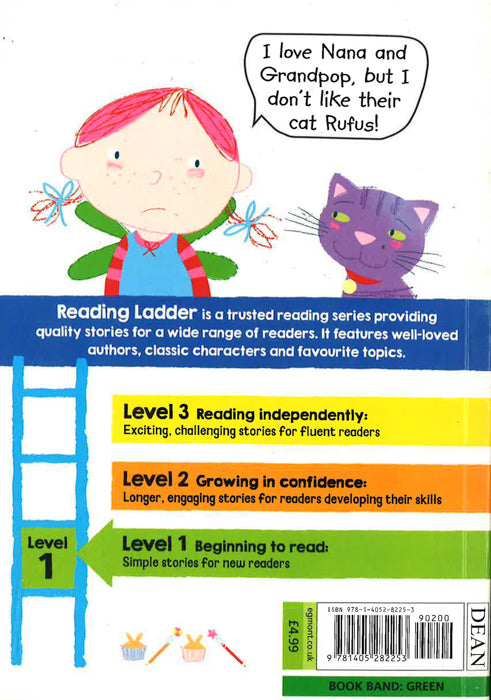 A delightful fairy story about a little girl discovering friendship in the most unexpected of places, perfect for children learning to read. From the author of Dilly the Dinosaur. A delightful fairy story about a little girl discovering friendship in the most unexpected of places, perfect for children learning to read. From the author of Dilly the Dinosaur. Flora the fairy loves going to visit Nana and Grandpop. But she is scared of their cat Rufus. He stares at her and silently follows her around. When Rufus has to stay outside because of her, Flora feels bad. What is she going to do? Luckily Nana and Grandpop have a plan to show Flora that Rufus only wants to be friends - with the help of a little fairy magic! The Reading Ladder series helps children to enjoy learning to read. It features well-loved authors, classic characters and favourite topics, so that children will find something to excite and engage them in every title they pick up. It's the first step towards a lasting love of reading. Level 1 Reading Ladder titles are perfect for new readers who are beginning to read simple stories with help. Short, simple sentences Familiar, repeated words Big, clear type 1 - 5 lines per page Bright, fun pictures to help talk about the story All Reading Ladder titles are developed with a leading literacy consultant, making them perfect for use in schools and for parents keen to support their children's reading. Book band: Green