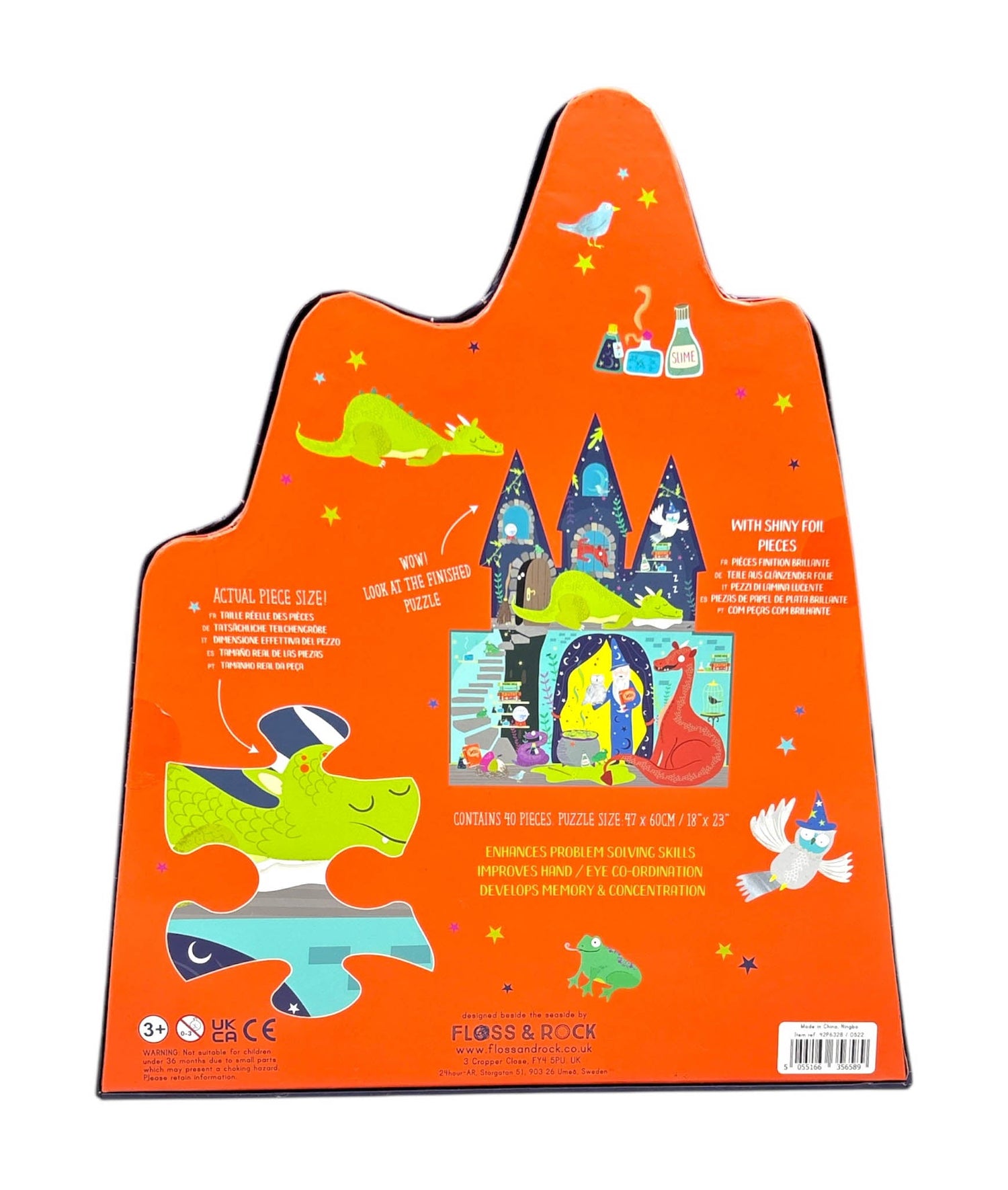 Why Choose This Product: The Floss & Rock 40 Pc Shaped Jigsaw Puzzle – Spellbound is more than just a game; it’s a journey into a world of fantasy. It’s an excellent way for children to enjoy playful learning while exploring a magical universe.