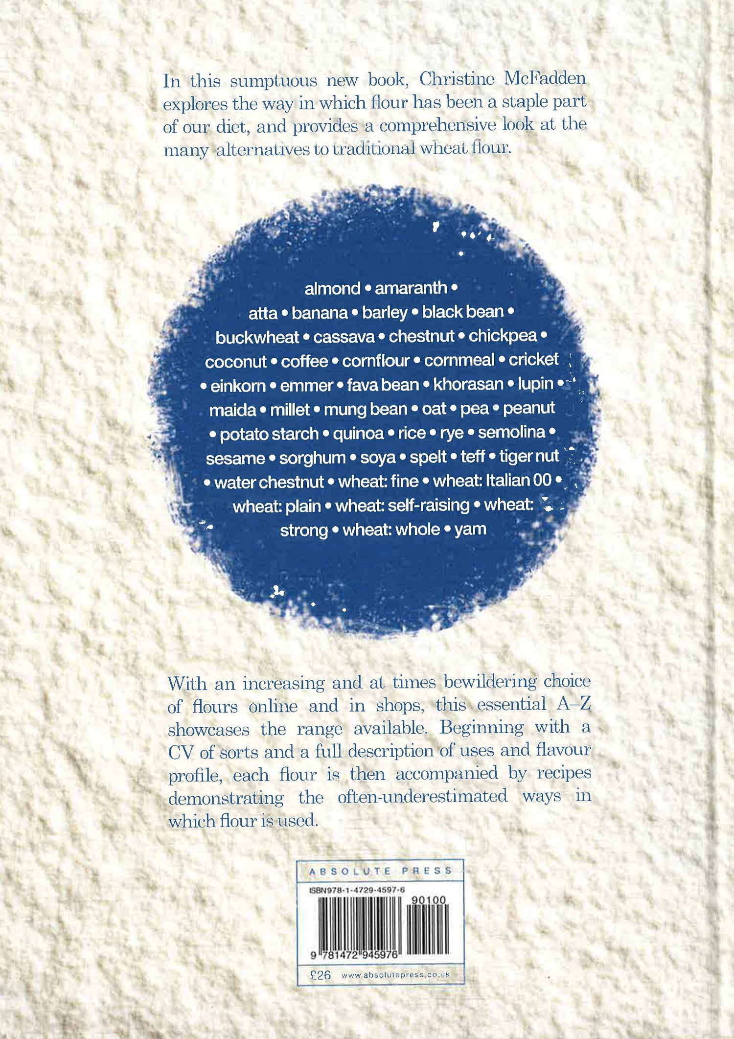 Grains and pulses, nuts and seeds: recipes from breads and tortillas to pancakes and pies. In this timely new book Christine McFadden explores the way in which flour has been a staple part of our diet, and provides a comprehensive look at the alternatives to traditional wheat flour. With an increasing and at times bewildering choice of flours online and in shops, this book follows a usable A-Z format, providing a CV of sorts for each flour (including plant source, gluten/protein content, flavour profile and how best to use). Each of the flours featured is accompanied by suggested recipes from Christine's kitchen, and these recipes demonstrate the often underestimated ways in which flour is used. Flours range from cassava and quinoa to cricket flour and coffee flour, with delicious recipes such as cheddar and chilli cornbread (using amaranth flour), salted chocolate tart with buckwheat and walnut pastry, spicy onion pancakes (using moong dal) and spring lamb pot pies (with tradition plain wheat flour). Recipes are accompanied by beautiful photography to bring the dishes to life.