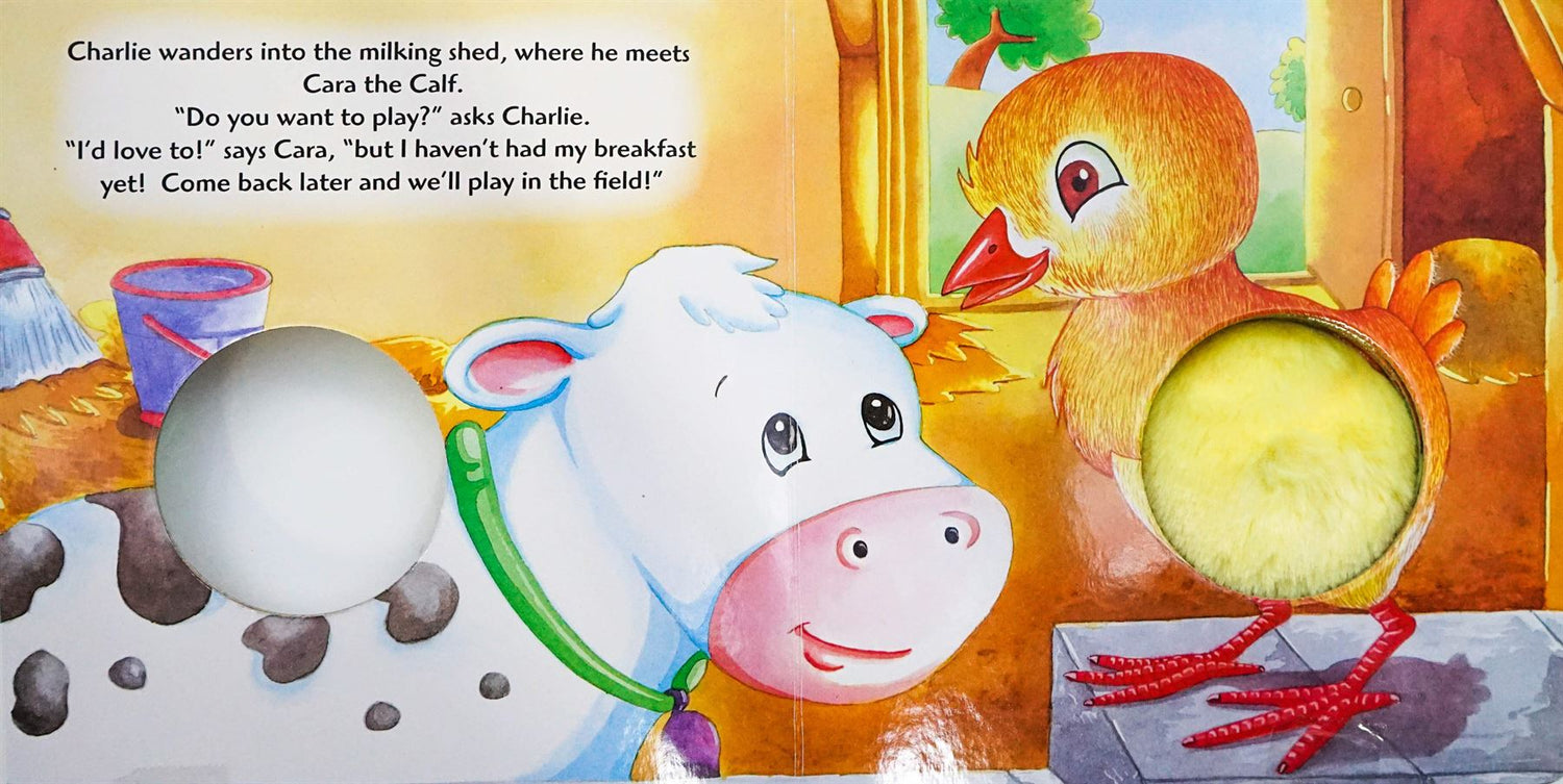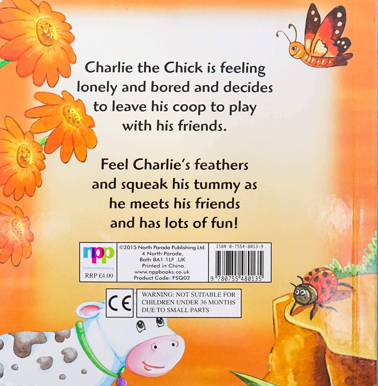 Charlie the Chick is feeling lonely and bored and decides to leave his coop to play with his friends. Feel Charlie's squeak his tummy as he meets his friends and have lots of fun!