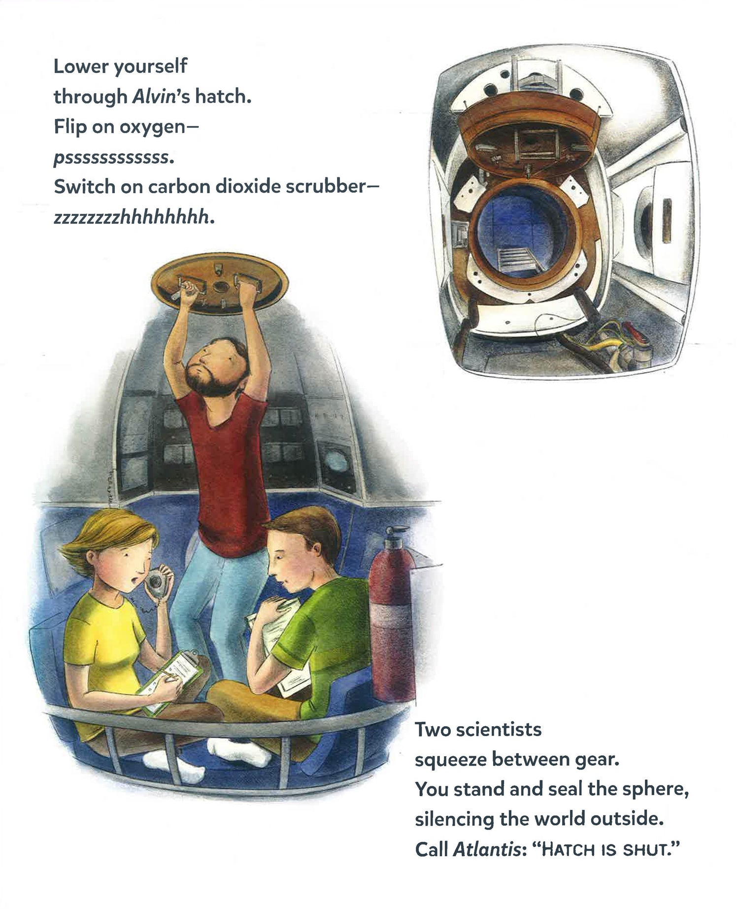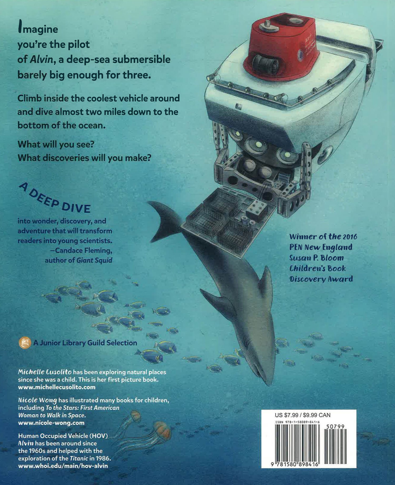 Experience a day in the life of an Alvin pilot and join scientists at the seafloor to collect samples and conduct research. Along the way, discover what one wears, eats, and talks about during a typical eight-hour trip in a underwater craft and find out more about the animals that live deep in our oceans. Extensive back matter explains how Alvin works, describes the author's research, and includes a glossary and further reading.