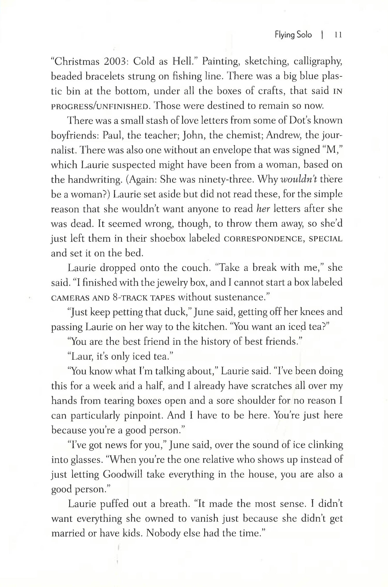 With a cast of unforgettable characters and a heroine you will root for from page one, Flying Solo is a wonderfully original story about growing up, coming home, and learning to make a life for yourself on your own terms.