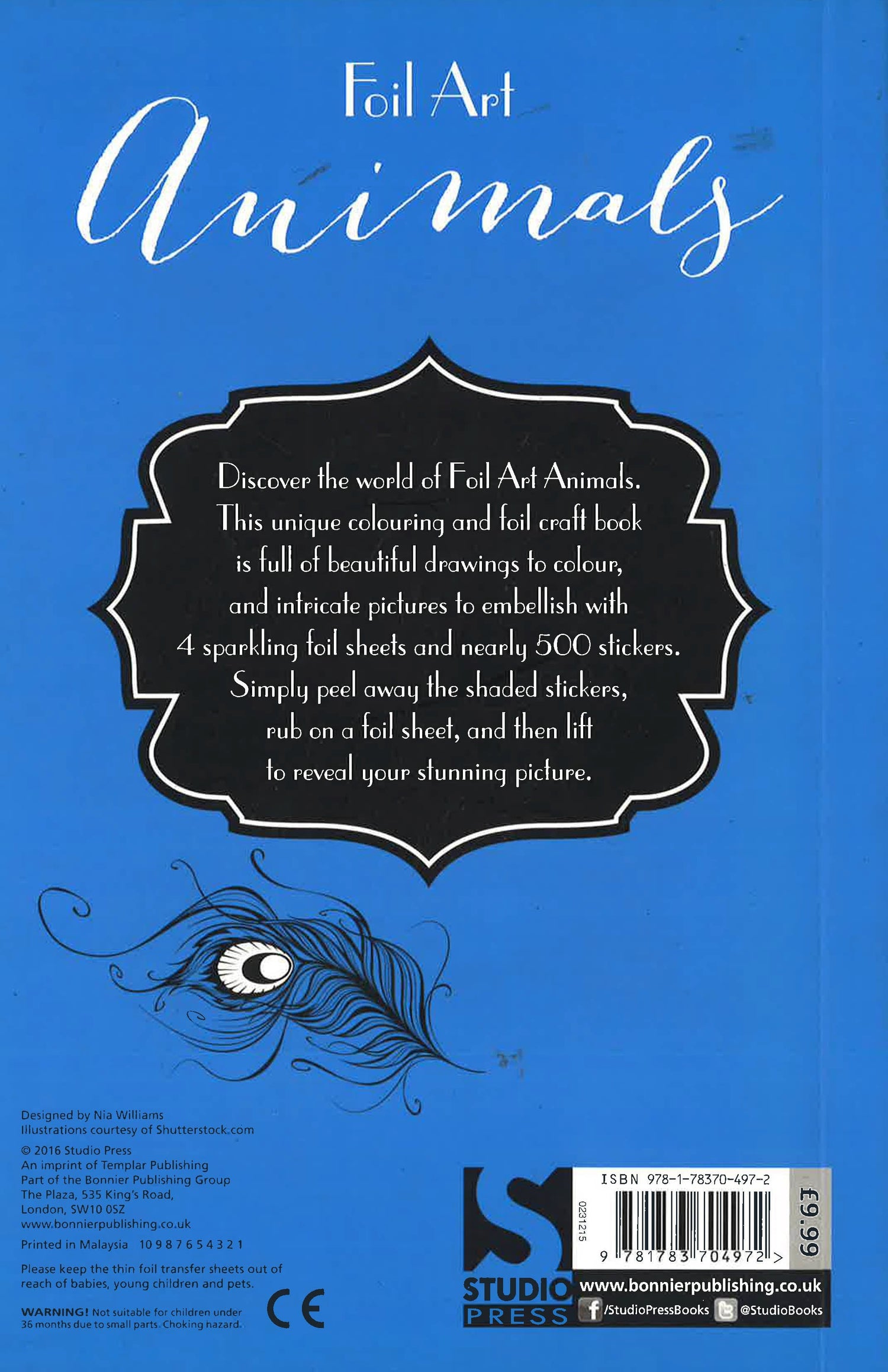 Innovative sticker and colouring books where you can customise your pictures with shiny foil, but no glue is required! Each book includes a packet of foil sheets, a foiled sticker sheet and beautiful pictures to decorate. Simply peel back the pre-cut pictures or shapes to reveal a sticky surface, position the foil on top then rub and lift to reveal a shiny foil addition to your picture. Then colour and tear out to hang up and admire. Discover the world of Foil Art Animals with lyrical quotes from authors such as Charles Dickens, William Shakespeare and Sir Walter Scott. From tiny hummingbirds and butterflies to magnificent eagles and elephants, there are lots of intricate animal illustrations for you to decorate.