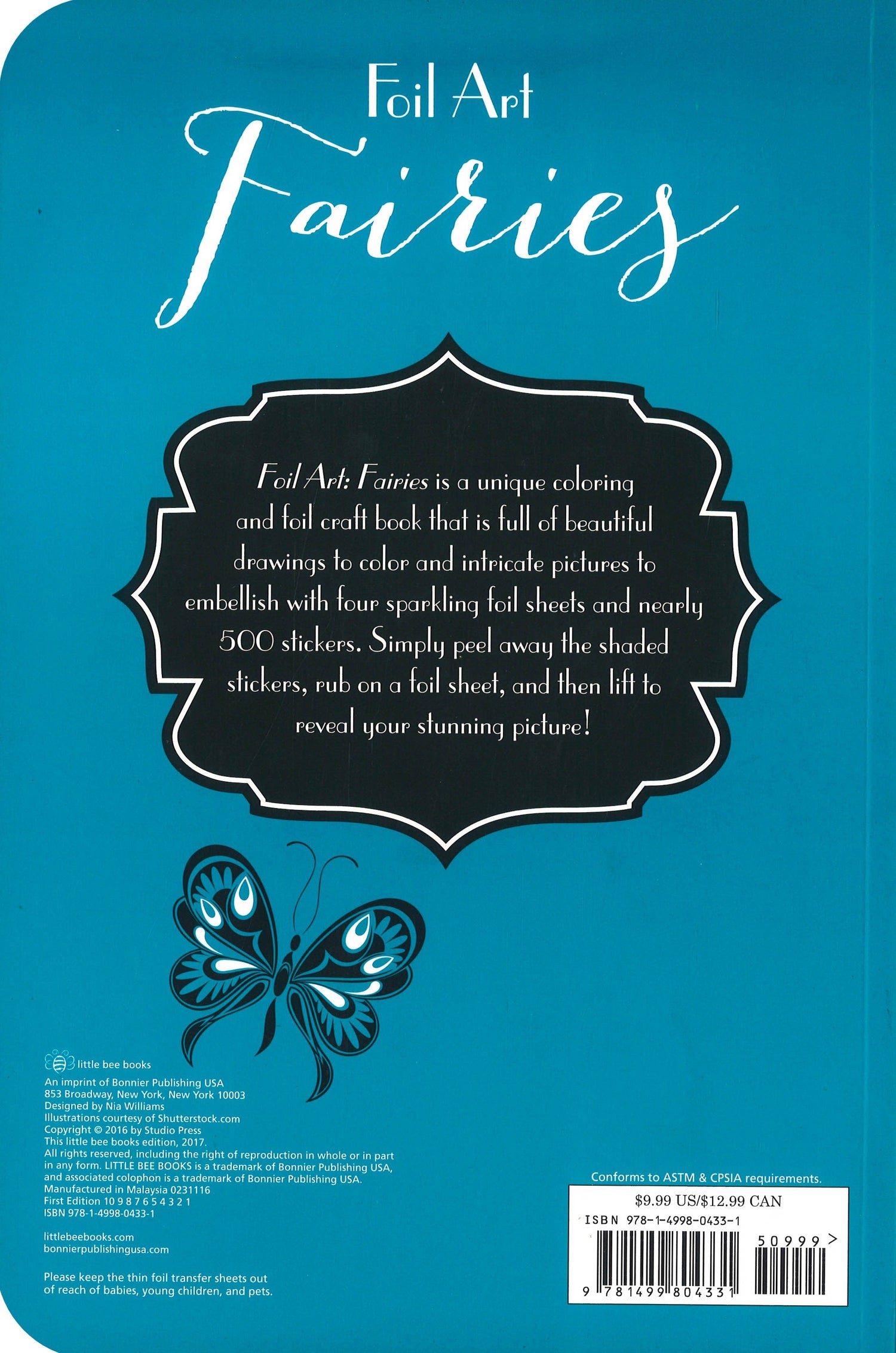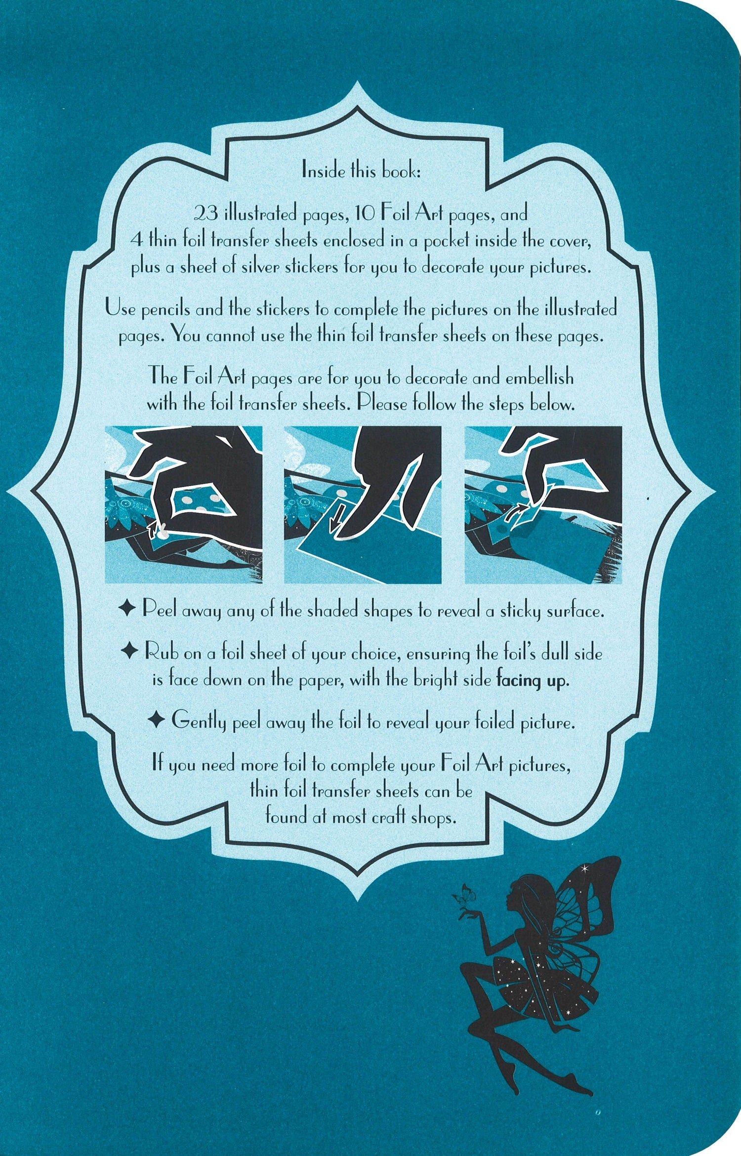 Kids can beautifully illustrated color and decorate fairy silhouettes with foiled sheets. There are ten special pictures to reveal by first peeling off the sticker and then rubbing the colored foil onto the sticky surface in this unique and beautiful activity book! There are also a sheet of stickers and 23 pages to color on your own. Discover the world of Foil Art Fairies with lyrical quotes from authors such as William Shakespeare and Christina Rossetti. From intriguing woodland scenes to beautiful fairy queens, there are lots of intricate fairy illustrations for kids to decorate.