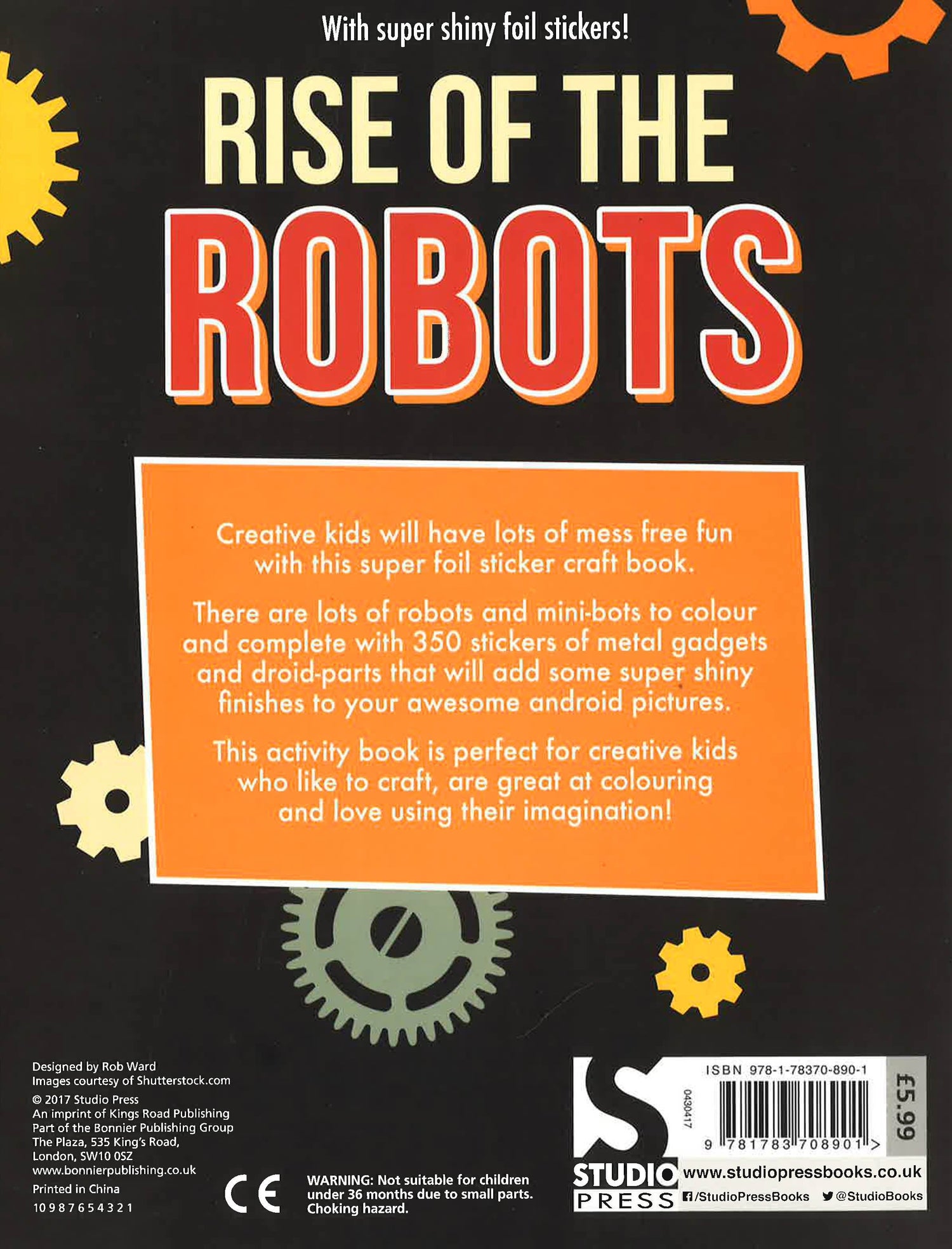 Foil Art is a fun and totally mess-free way to create awesome android pictures! Design and colour the robots, then take your pictures to the next level by using the foil stickers and the foil transfer sheets to add super shine finishes to your pictures. Add shiny foil parts to the robots, droids, mini-bots and monster-bots by choosing a foil sticker and positioning on the page wherever you wish. There are 350 silver stickers for you to use and decorate your pictures. Perfect for creative kids who like to craft, are great at colouring and love using their imagination!