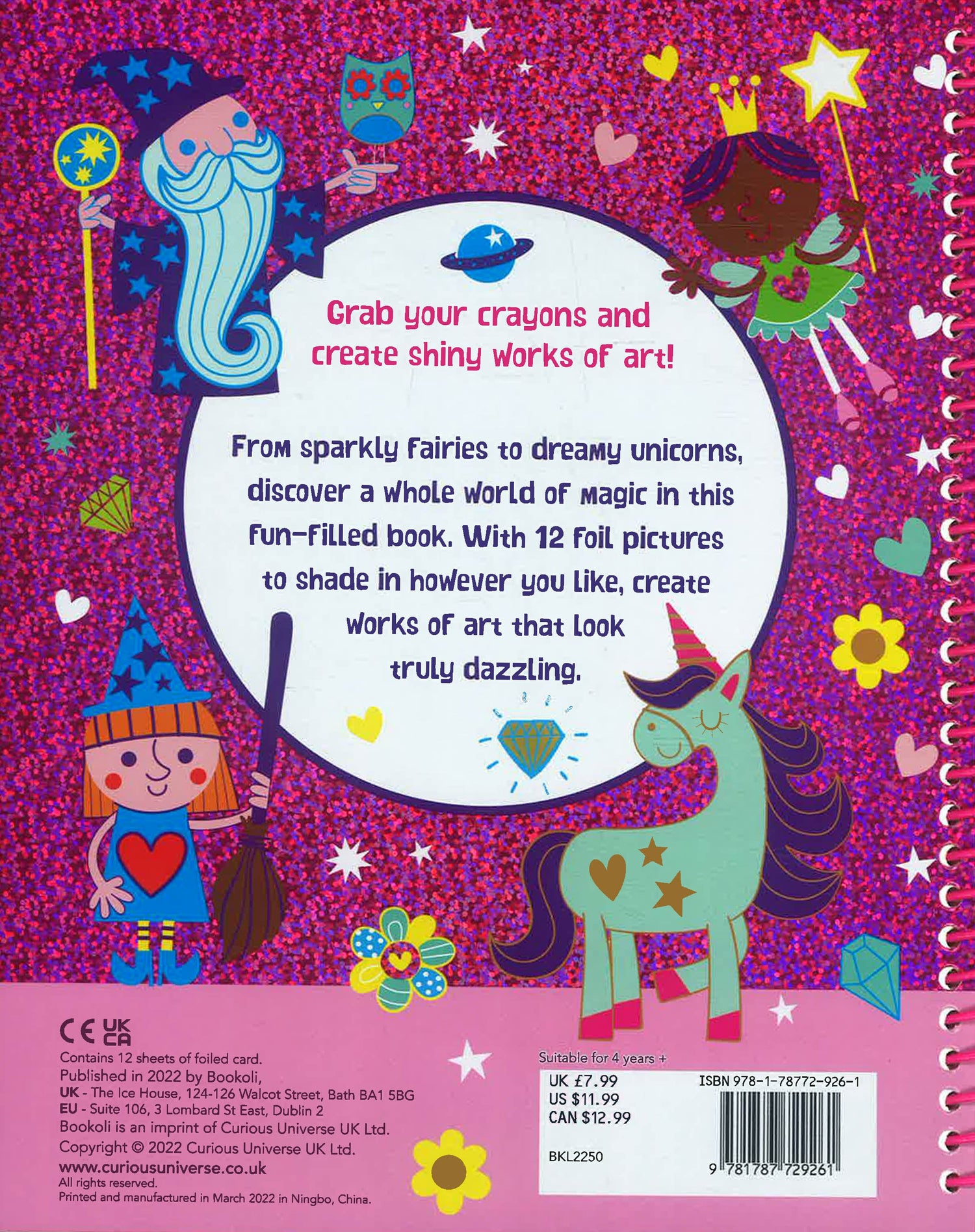 From a sparkly fairies to dreamy unicorns, dicover a whole world of magic in this fun-filled book. With 12 amazing, sparkling pictures to shade in however you like, create works of art that look truly awesome.