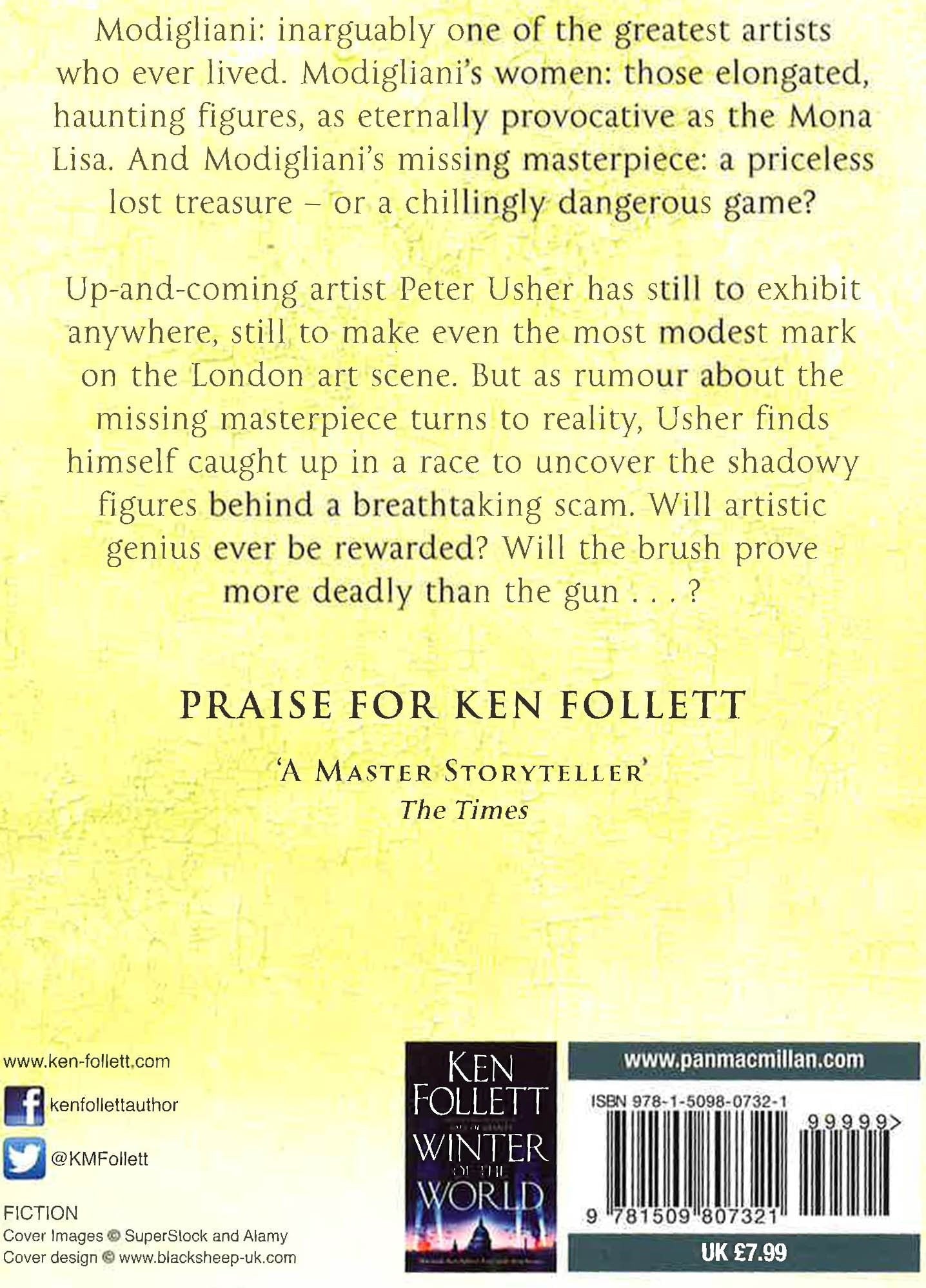 Modigliani. Unarguably one of the greatest artists who ever lived. Modigliani's women. Those elongated, haunting figures, as eternally provocative as the Mona Lisa. And Modigliani's missing masterpiece. A priceless lost treasure - or a chillingly dangerous game? In Ken Follett's gripping thriller, The Modigliani Scandal, up and coming artist Peter Usher has still to exhibit anywhere, still to make even the most modest mark on the London art scene. But as rumour turns to reality, Usher finds himself caught up in a race to uncover the shadowy figures behind a breathtaking scam. Will art genius ever be rewarded? Will the brush prove more deadly than the gun . . . ?
