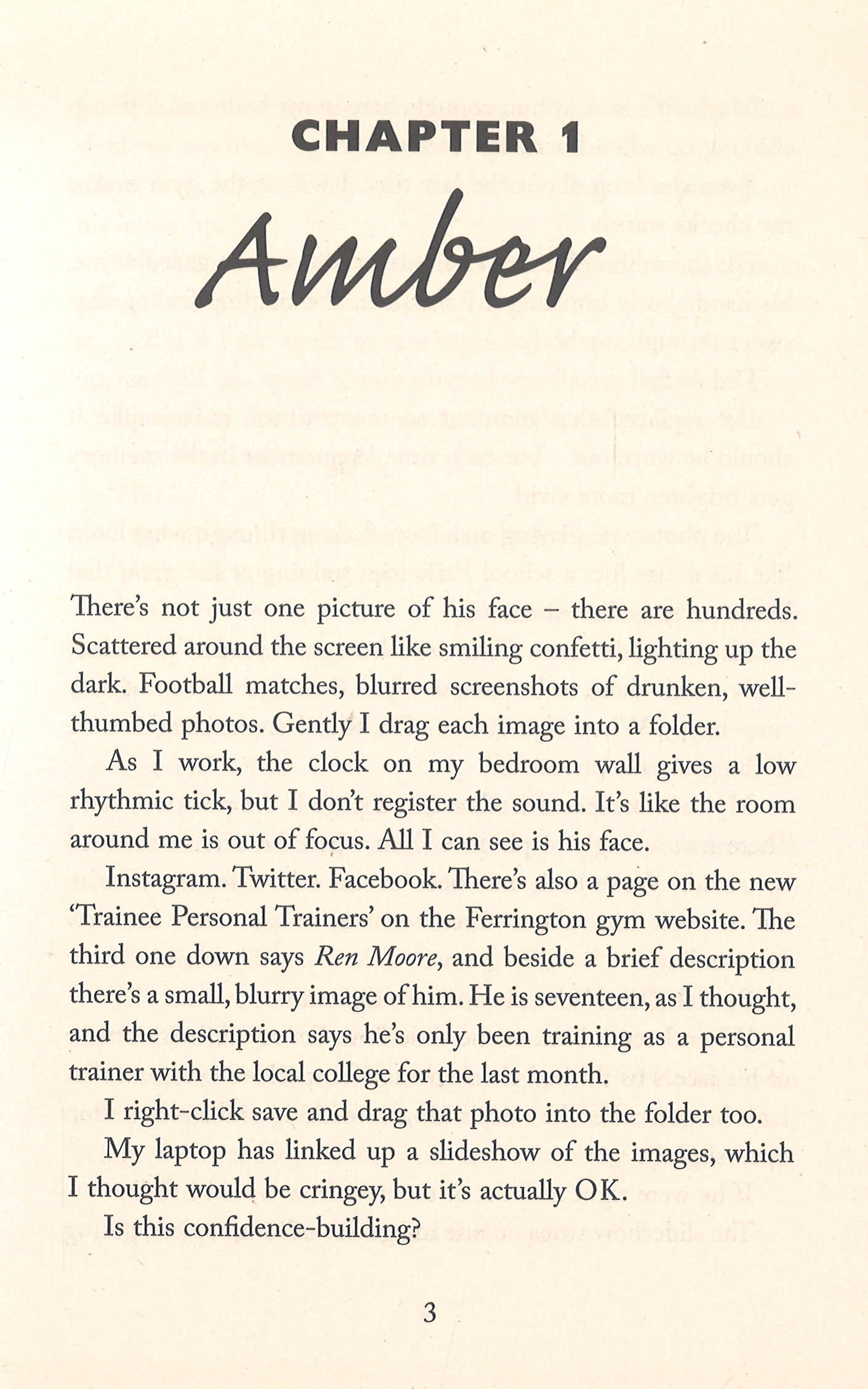 Misfit Amber's online obsession with her personal trainer begins to creep into the real world. But when she hears a terrible rumor about him, she drops everything to try and prove his innocence - even if it means compromising her own.