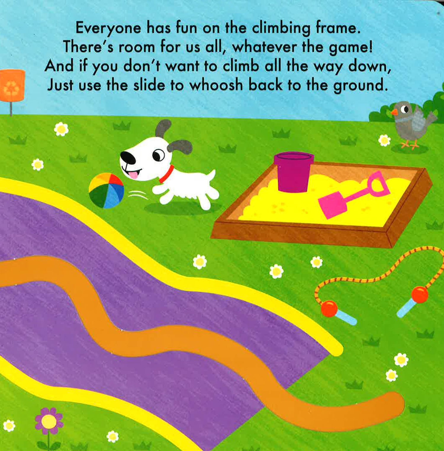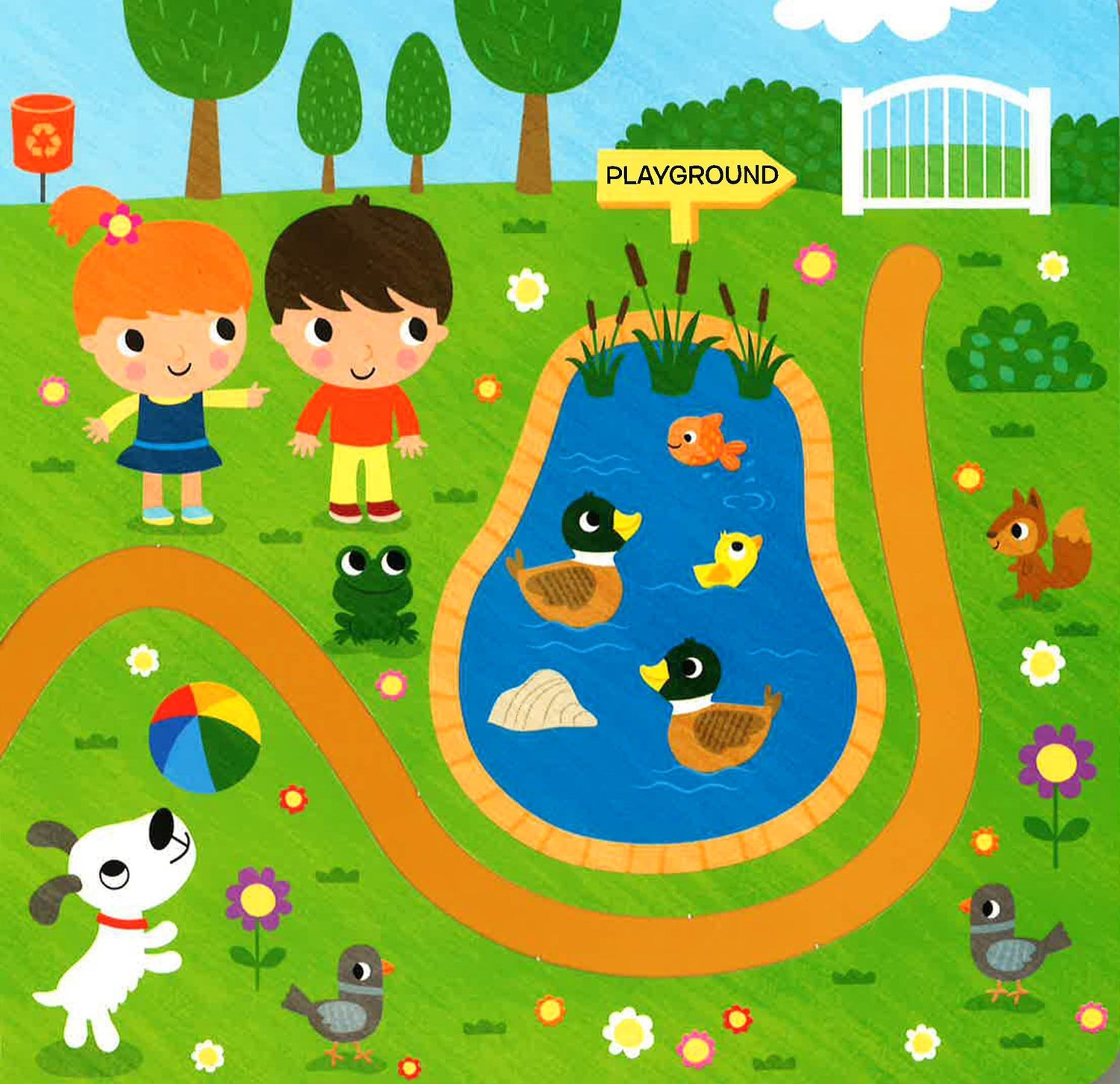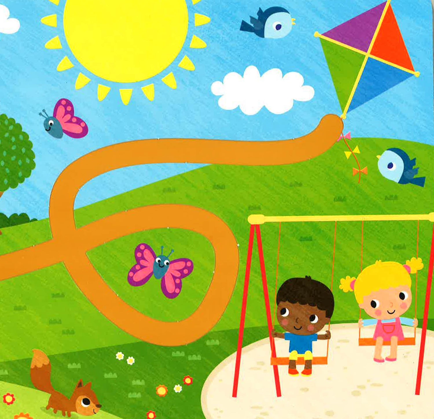 Follow the trail on each page to discover sll the fun of the playgrouond. This simple, fun activity introduces your child to pre-writing skills and supports early hand-eye coordination development.