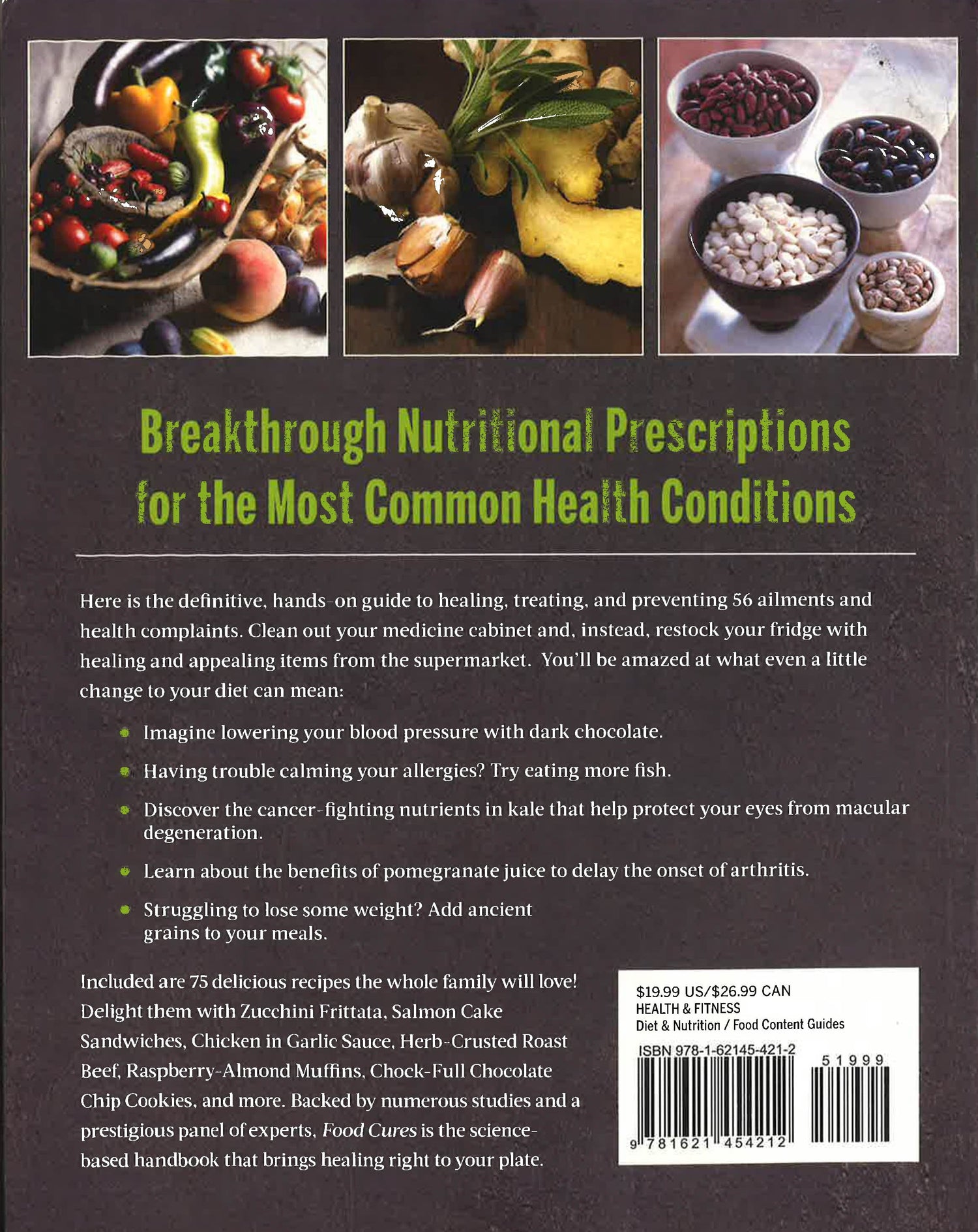 Heal What Ails You with Delicious Superfoods! Discover the incredible healing power of everyday food--treat the most common conditions naturally, safely, and deliciously--and live pain free, allergy free, disease free, and worry free. Clean out your medicine cabinet and restock the shelves of your kitchen pantry with healing and appealing items from the grocery store. Rely less on pills and more on real food. How much? How often? In Food Cures, you'll find all the answers, the research-validated treatments, and successful cures for dozens of common conditions. The past ten years have been filled with intriguing announcements from the world of medial research. Forget about wonder drugs; we're living in a time of wonder foods. The foods described in this book are nutritional powerhouses bursting with compounds that have specific and well-defined health benefits. Changing your diet won't guarantee that you'll never get sick or need drugs, but eating the right food can help heal what ails you and can bolster your body's defenses against disease, treat disease directly, aid in weight loss, and even slow the aging process. Healing foods section includes: