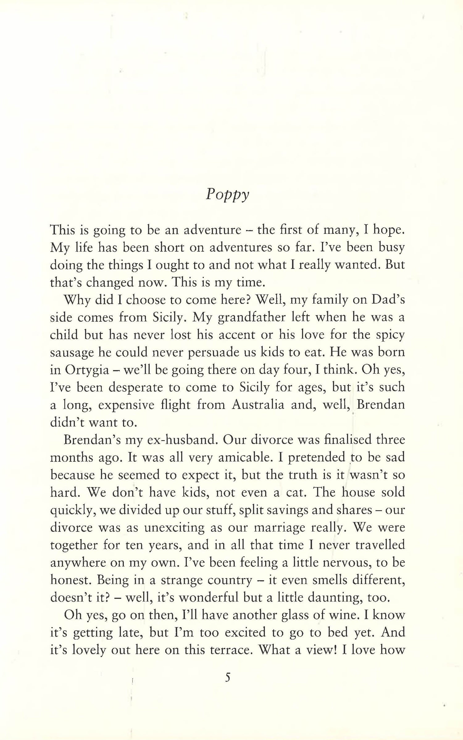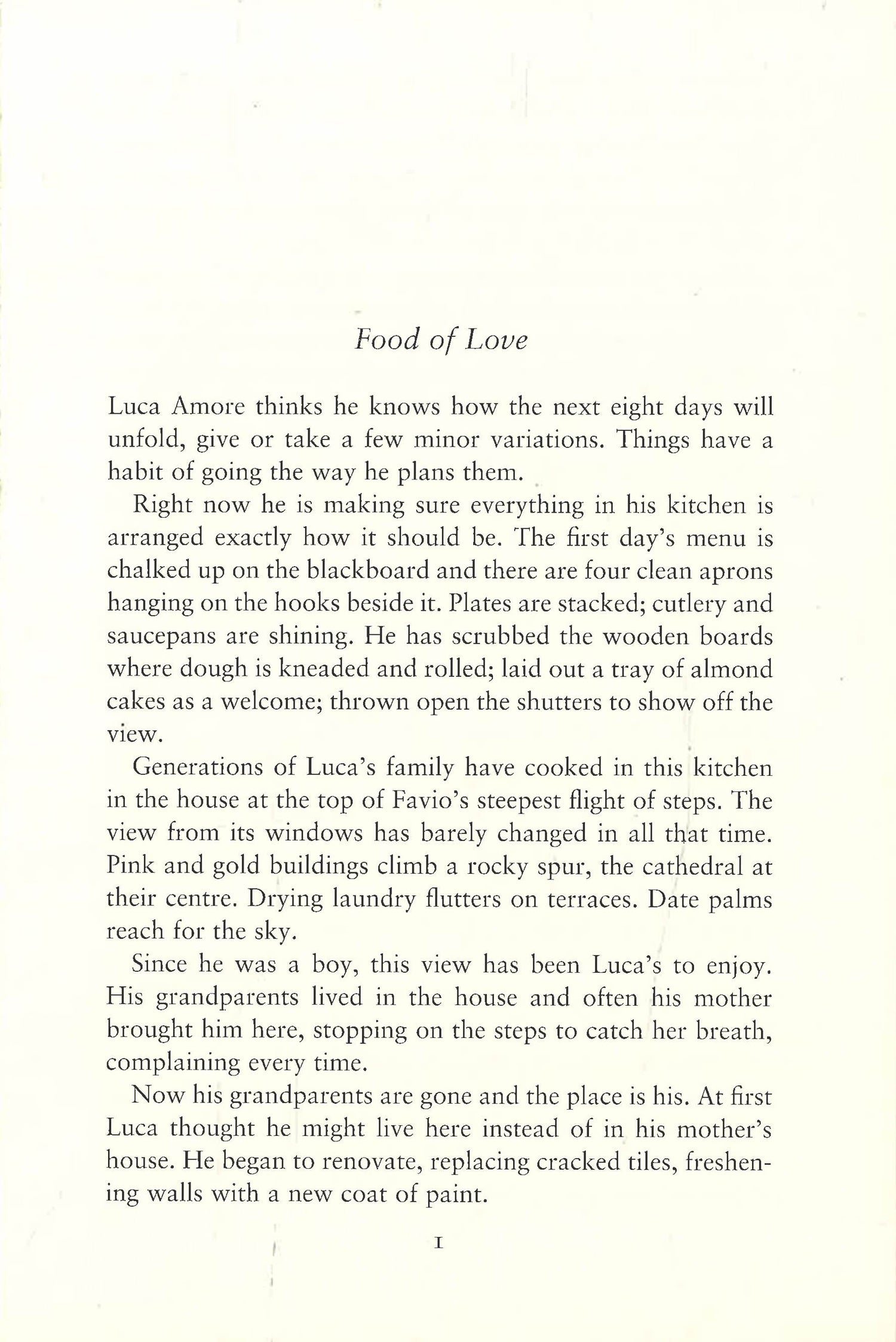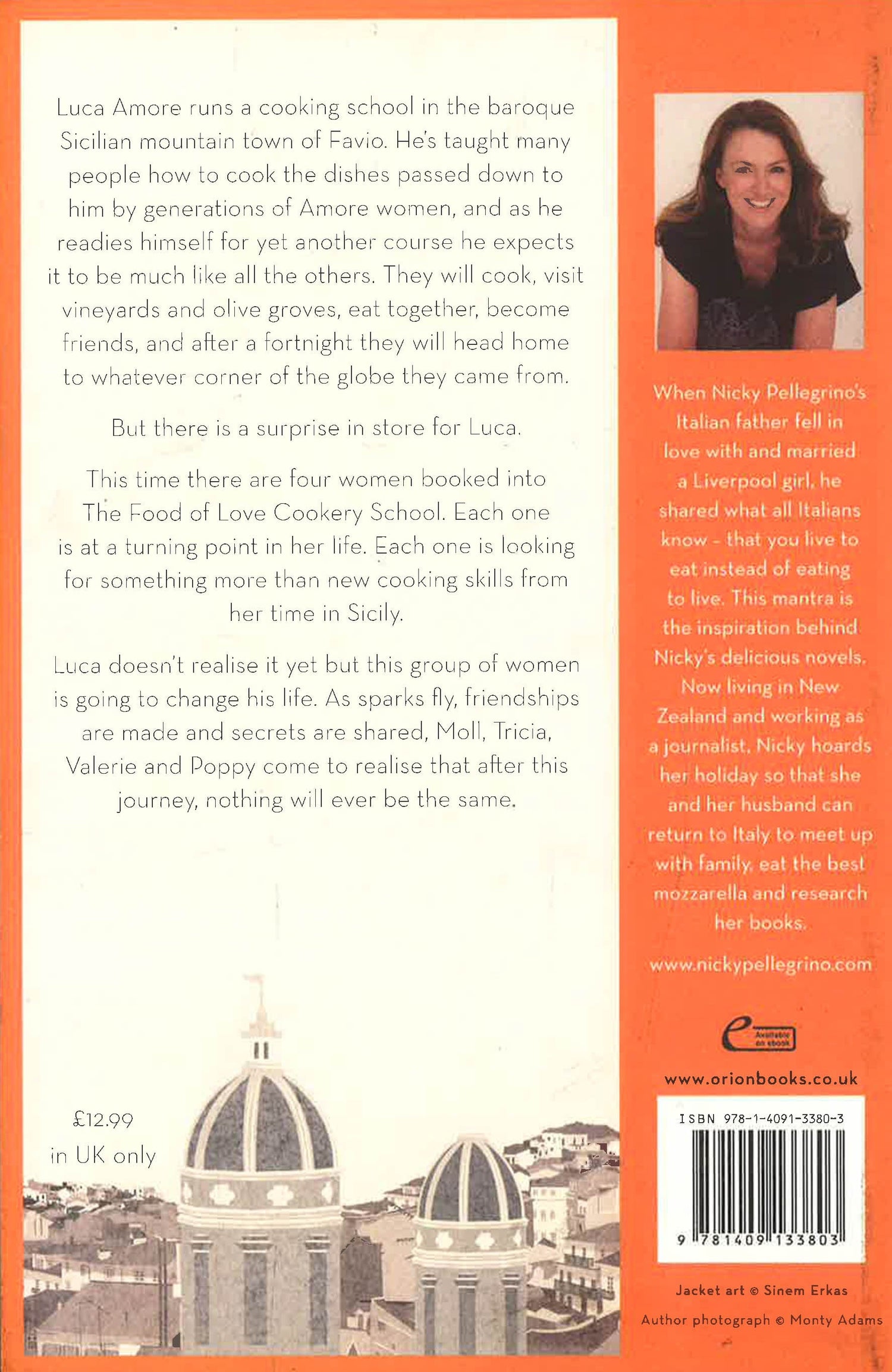 Luca Amore runs a cooking school in the baroque Sicilian mountain town of Favio. He's taught many people how to cook the dishes passed down to him by generations of Amore women. As he readies himself for yet another course he expects it to be much like all the others. He will cook, he will take his clients to visit vineyards and olive groves, they will eat together, become friends, and then, after a fortnight, they will pack up and head home to whatever corner of the globe they came from. But there is a surprise in store for Luca. This time there are four women booked in to The Food of Love Cookery School. Each one is at a turning point in her life. Each one is looking for something more than new cooking skills from her time in Sicily. A divorcee, a widow, an exhausted working mum and an unfulfilled top London barrister come together for this idyllic escape into the sun-drenched Sicilian hills, and a tantalising culinary adventure. Sparks fly, friendships are made and secrets and stories are shared. Luca doesn't realise it yet but this group of women is going to change his life. And for Moll, Tricia, Valerie and Poppy, after this journey, nothing will ever be the same.