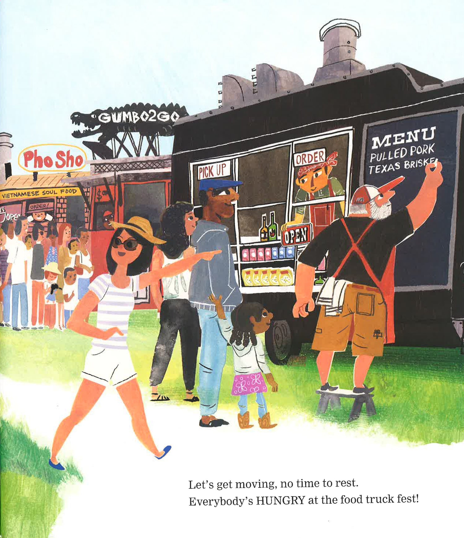 A colorful, whimsical picture book about everyone's favorite kitchens-on-wheels: food trucks! Join the members of one family as they head to the Food Truck Fest! They gather their things, cross the bridge, and prepare for a fun-filled day. And as they get ready, the workers on the food trucks get ready, too--preparing, tasting, and traveling across the bridge to join all the other kitchens-on-wheels. With delicious free samples and cuisines from around the world, it's a day of trying new things and having fun together! Alexandra Penfold's rollicking, rhyming text and Mike Dutton's rich, dynamic illustrations make Food Truck Fest! the perfect story for kids who love things that go.