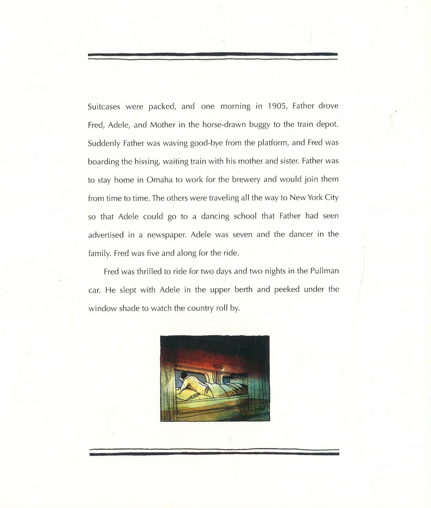 In 1905, four-and-a-half-year-old Fred Astaire put on his first pair of dancing shoes -- and from that moment, his life was filled with singing, dancing, and fancy footwork. Fred's older sister, Adele, was the real dancer, but Fred worked hard to get all the steps just right, and it wasn't long before he was the one capturing headlines and stealing the show. In this fascinating story of child stars who hoof their way to knockout success on Broadway and beyond, Roxane Orgill and Stephane Jorisch team up for a bravura performance, capturing the sophistication, fluidity, and grace of two of the biggest names in dance history.