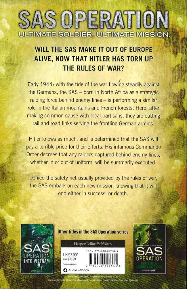 Ultimate soldier. Ultimate mission. But will the SAS survive the Second World War, knowing that Hitler has torn up the rules of war? Early 1944, and with the tide of the war flowing steadily against the Germans, the SAS - born in North Africa as a strategic raiding force behind enemy lines - is performing a similar role in the Italian mountains and French forests. Here, after making common cause with local partisans, they are cutting rail and road links serving the frontline German armies. Hitler knows as much, and is determined that the SAS will pay a terrible price for their efforts. His infamous Commando Order decrees that any raiders captured behind enemy lines, whether in or out of uniform, will be summarily executed. Denied the safety net usually provided by the rules of war, the SAS embark on each new mission knowing that it will end either in success, or death.
