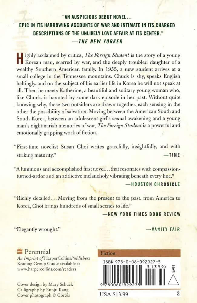 Set in 1955 at a small college in the Tennessee mountains, this sophisticated debut novel tells of the burgeoning love affair between a young Korean man scarred by war and the deeply troubled daughter of a wealthy Southern American family.