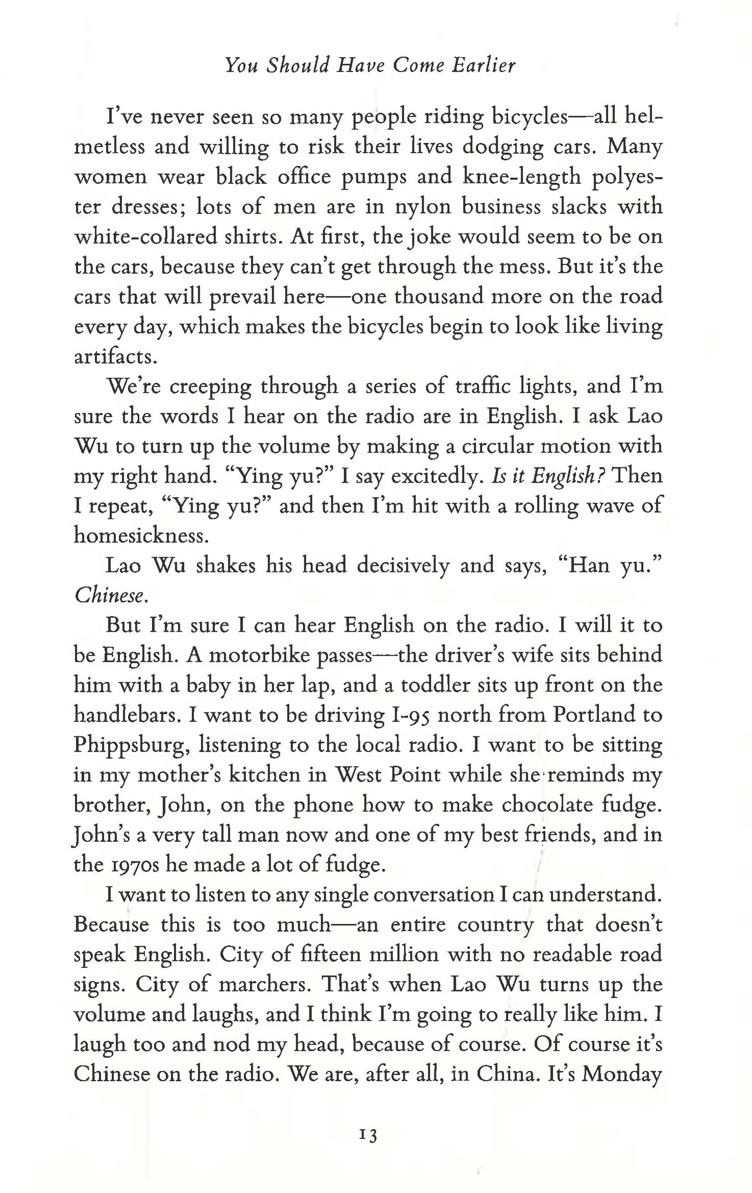 When Susan Conley, her husband, and their two young sons leave their house in Maine for a two-year stint in a high-rise apartment in Beijing, they are prepared to weather the inevitable onslaught of culture shock. But the challenges of living and mothering in an utterly foreign country become even more complicated when Susan learns she has cancer. After undergoing treatment in Boston, she returns to Beijing, again as a foreigner--but this time, it's her own body in which she feels like a stranger. Set against the eternally fascinating backdrop of modern China and full of insight into the trickiest questions of motherhood, this poignant memoir is a celebration of family and a candid exploration of mortality and belonging.