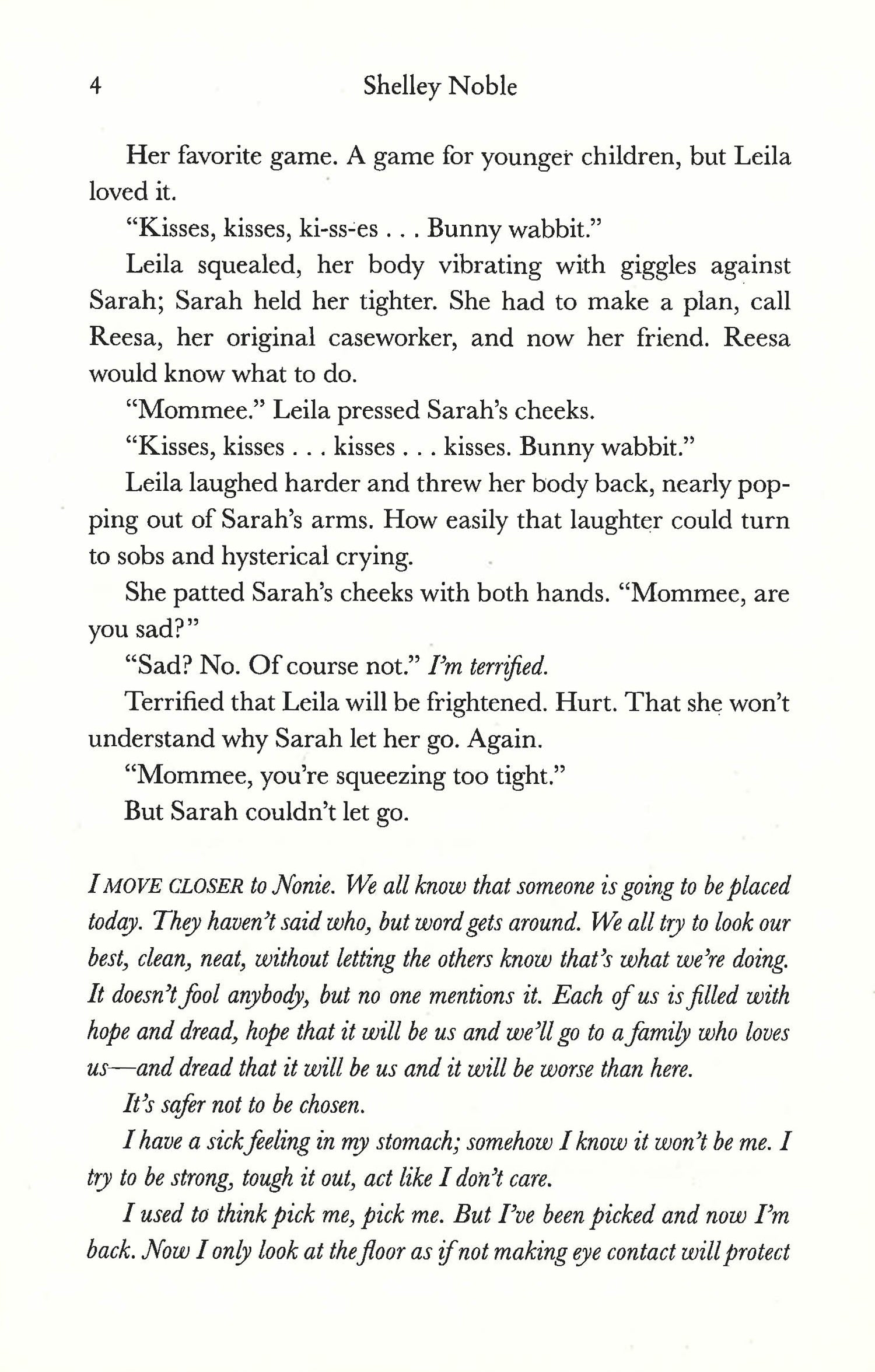Having grown up in foster care, Ilona Cartwright fights for the rights of children who have no one to fight for them. But to Sarah she is Nonie Blanchard, who grew up in the same group foster home as Sarah. They’d promised to be best friends forever, then Nonie was adopted by a wealthy family, and Sarah never heard from her again. Sarah still hurts from the betrayal. But Nonie harbors her own resentment toward the past.