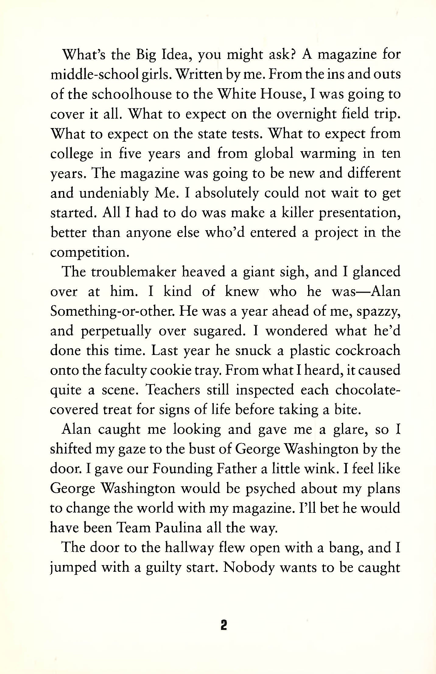 Paulina, Miko, Tally, and Ivy are four extraordinarily different seventh-graders. Paulina is 100% Type A. Miko is a fashionista. Tally is a theater queen. And Ivy - well, Ivy's the new girl at school. The four girls get tossed together to create a school magazine - by girls, for girls - in a competition to get funding for a new school program. But it seems like they'll never agree on anything. And just when they begin to make headway, their biggest rival - the athletes - threatens their progress. As the four girls try to complete the first issue of their magazine, and create a corresponding blog, they start to wonder if they can get past their labels and give all the girls in school a way to speak up.