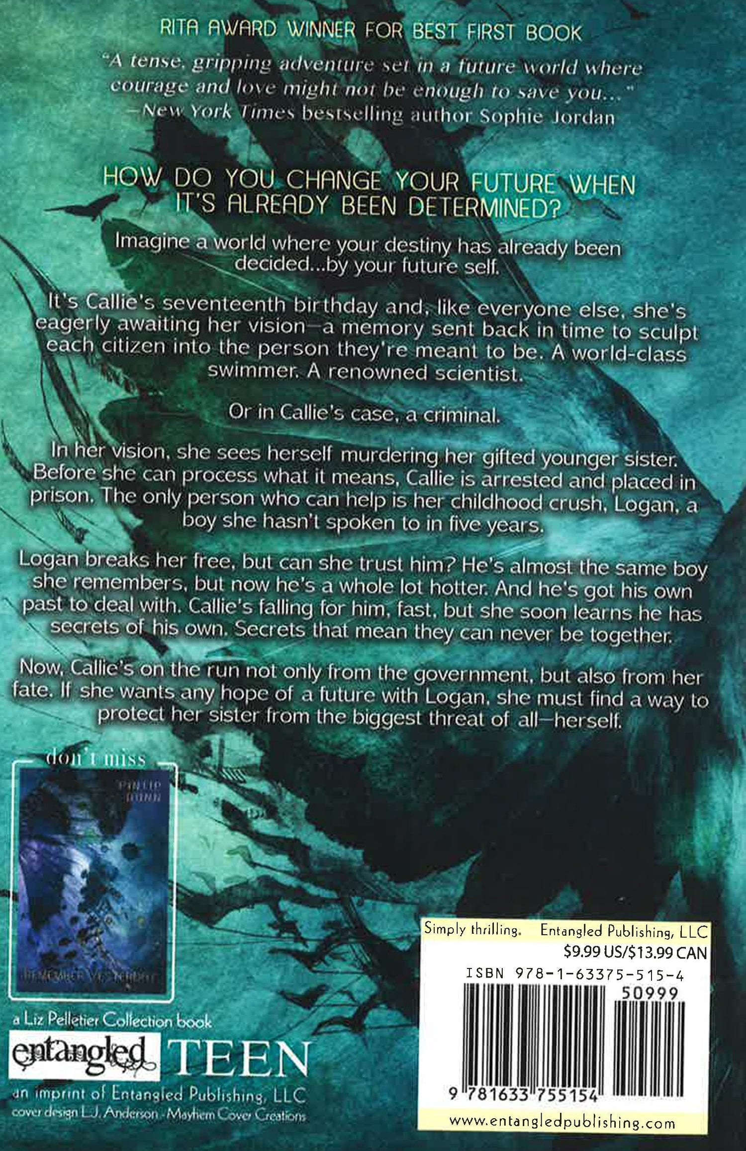 In a futuristic world the entire society is built around memories being sent back from the future. On their 17th birthday everyone will receive a memory that will help sculpt who they will be in the future. When Callie receives her memory, it isn't one of her changing the world. Callie is gifted with the vision of her murdering her younger sister, Jessamine. Arrested for a crime she has yet to commit Callie finds herself brutalized and held in the hell that is known as Limbo, a place where they keep people whose vision shows them breaking the law. While being held, Callie is tested on and finds out that the government are holding, torturing, and then making these people live out their vision. Once they are forced to commit their crime they are killed. This is the fate in store for Callie, but it's so much worse, because if the government finds out that Jessamine is gifted, they'll take her and do tests on her. Callie is saved from her fate though by Tony, a boy she knew years before. Tony helps break her out of prison and takes her to a camp of outsiders who have each run from civilization and the future memory they were given.
