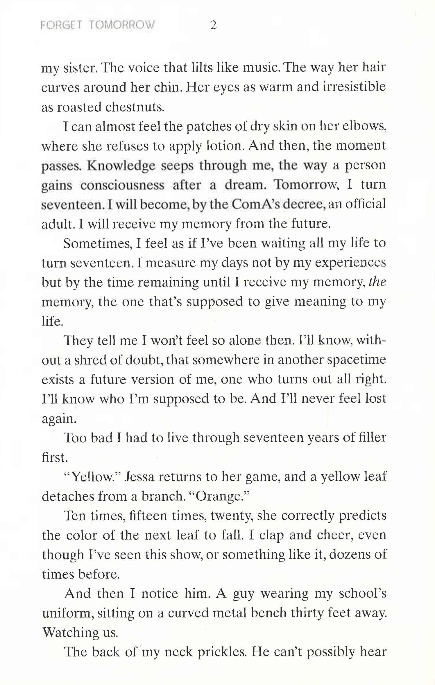 But running doesn't change the future and Jessamine is still taken and tested on by the government which sets off the motion of Callie returning to the city, but will Callie save her little sister or be forced to complete her memory of the future and kill her?