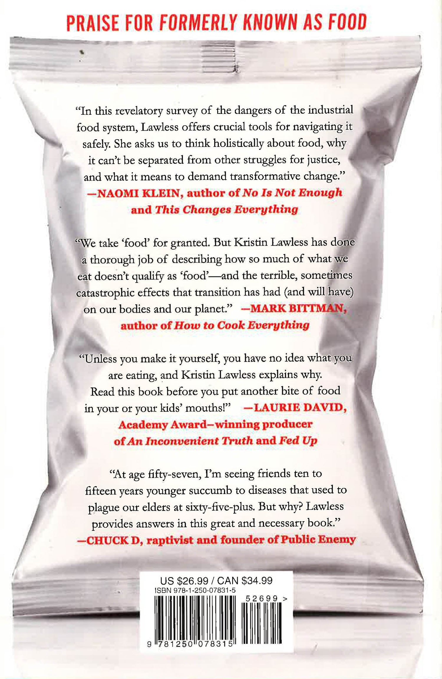 If you think buying organic from Whole Foods is protecting you, you're wrong. Our food - even what we're told is good for us - has changed for the worse in the past 100 years, its nutritional content deteriorating due to industrial farming and its composition altered due to the addition of thousands of chemicals from pesticides to packaging. We simply no longer know what we’re eating.In Formerly Known as Food, Kristin Lawless argues that, because of the degradation of our diet, our bodies are literally changing from the inside out. The billion-dollar food industry is reshaping our food preferences, altering our brains, changing the composition of our microbiota, and even affecting the expression of our genes. Lawless chronicles how this is happening and what it means for our bodies, health, and survival.An independent journalist and nutrition expert, Lawless is emerging as the voice of a new generation of food thinkers. After years of "eat this, not that" advice from doctors, journalists, and food faddists, she offers something completely different. Lawless presents a comprehensive explanation of the problem - going beyond nutrition to issues of food choice, class, race, and gender - and provides a sound and simple philosophy of eating, which she calls the "Whole Egg Theory."Destined to set the debate over food politics for the next decade, Formerly Known as Food speaks to a new generation looking for a different conversation about the food on our plates.
