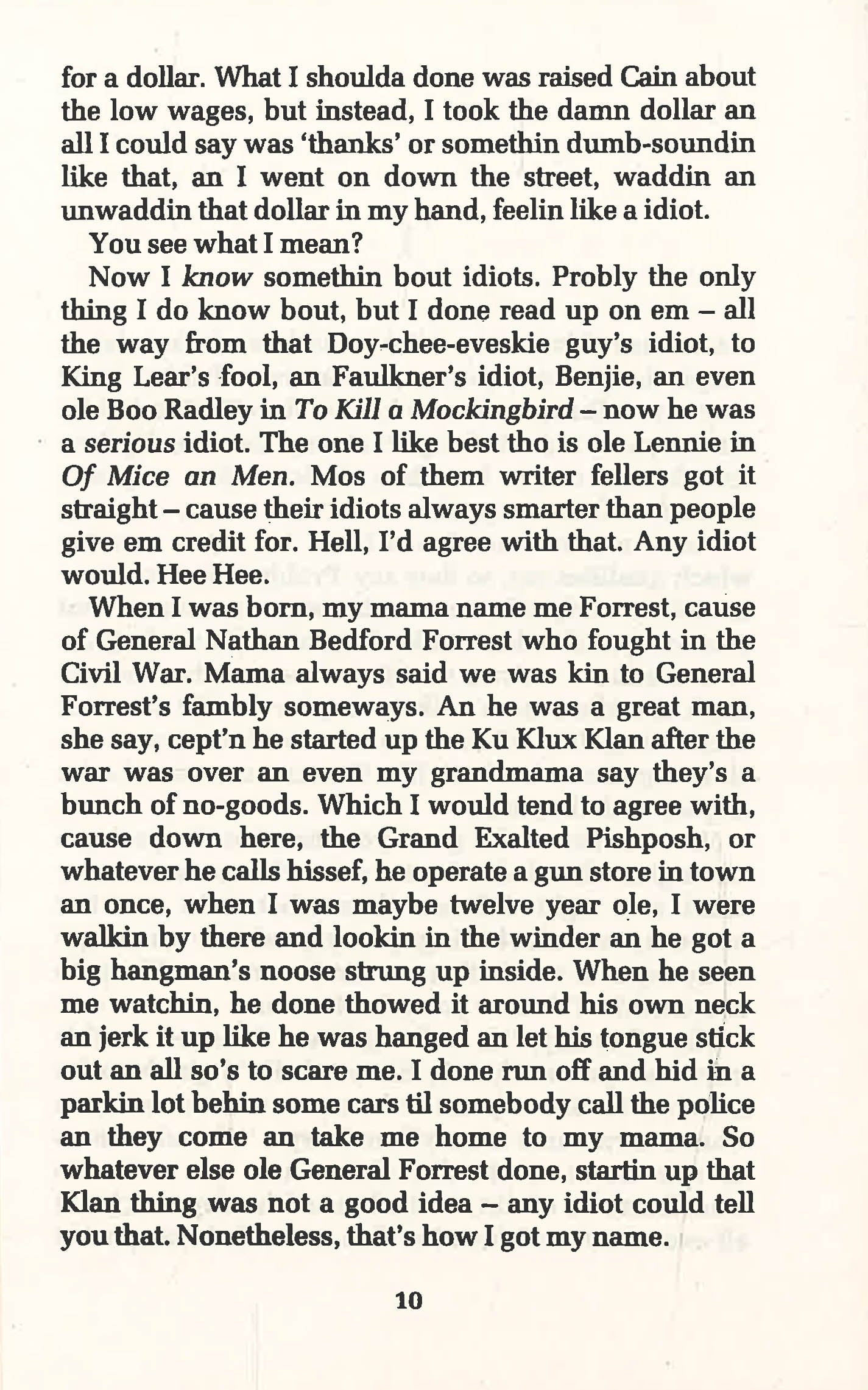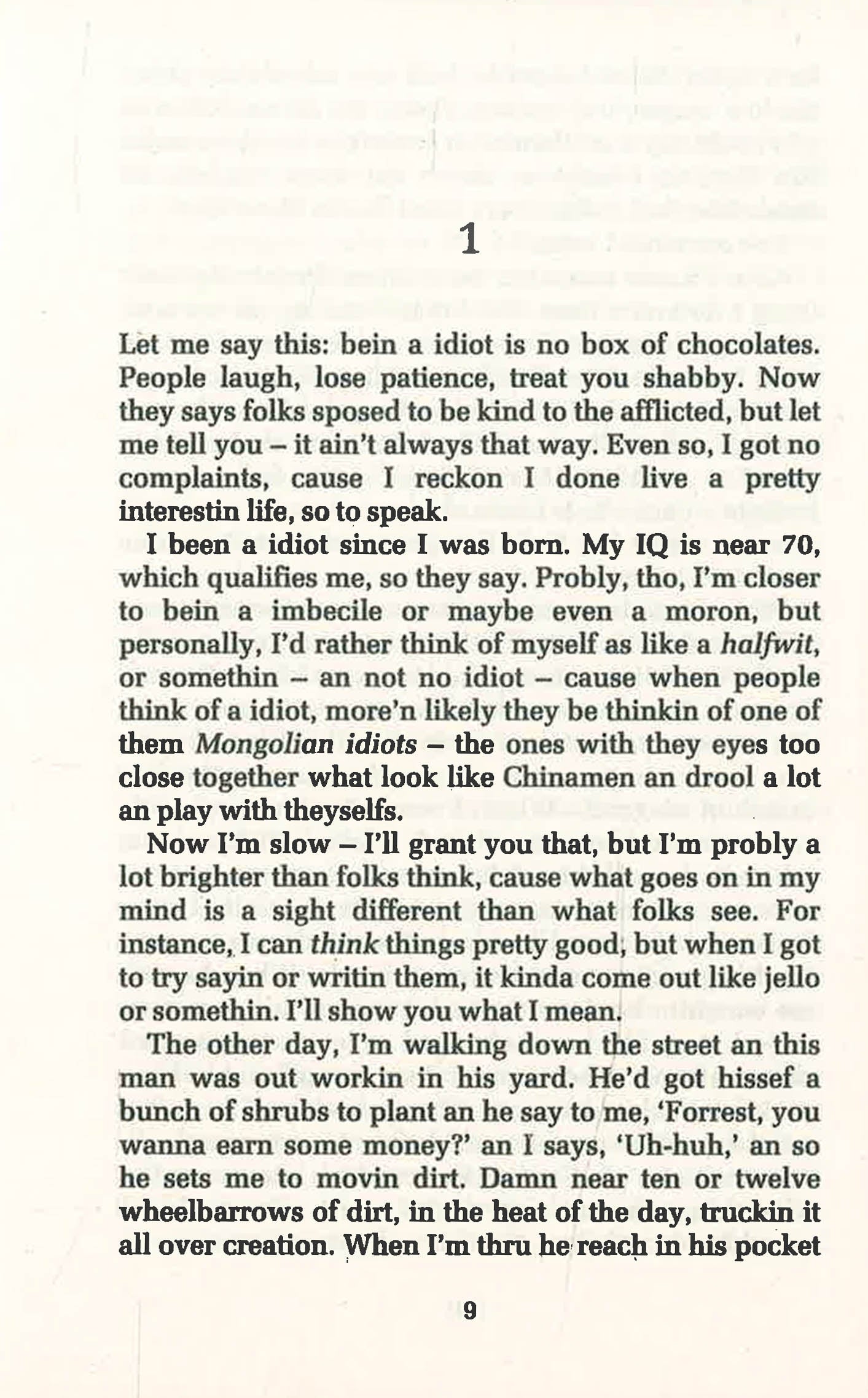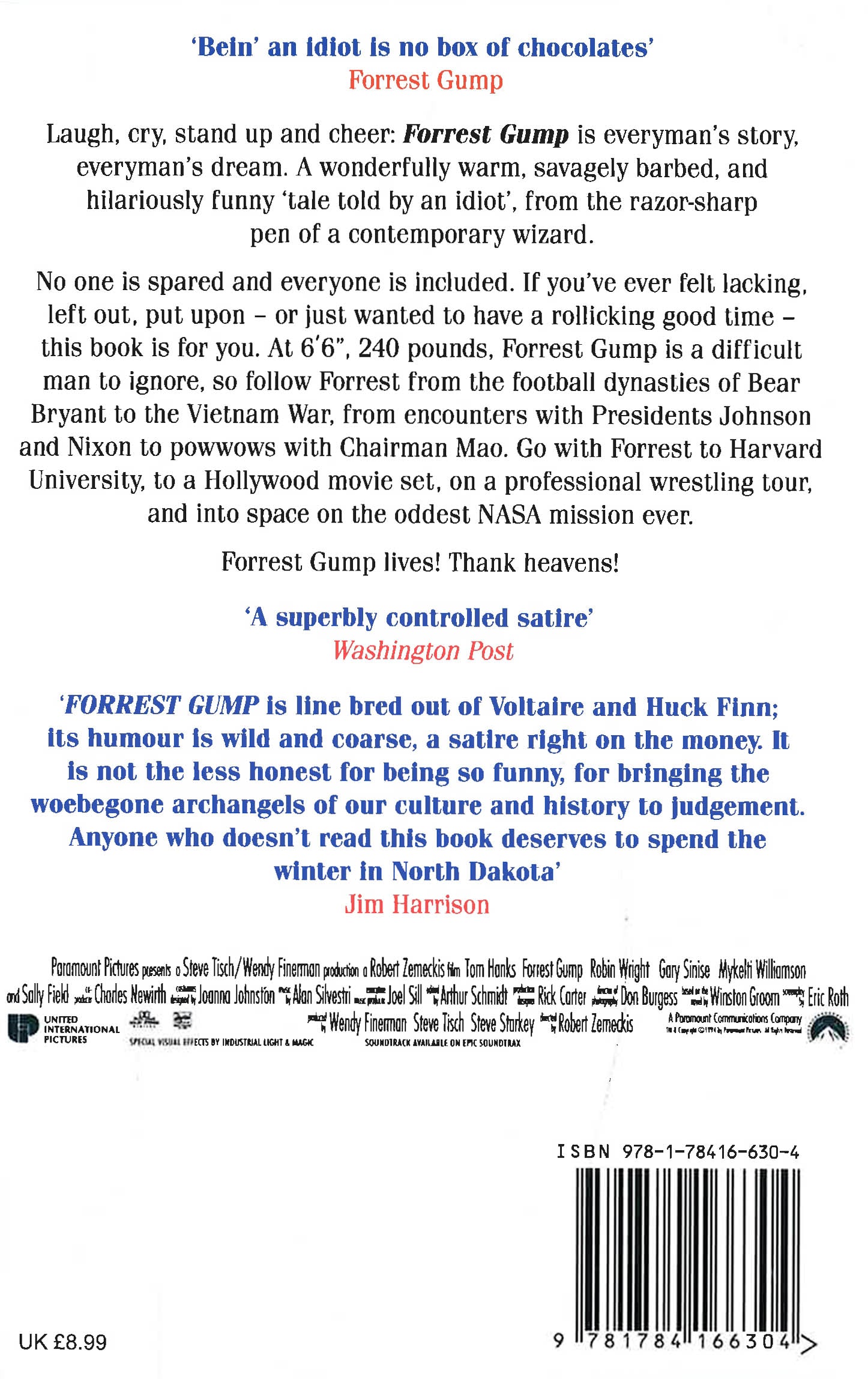 Six foot six, 242 pounds, and possessed of a scant IQ of 70, Forrest Gump is the lovable, surprisingly savvy hero of this classic comic tale. His early life may seem inauspicious, but when the University of Alabama?s football team drafts Forrest and makes him a star, it sets him on an unbelievable path that will transform him from Vietnam hero to world-class Ping-Pong player, from wrestler to entrepreneur. With a voice all his own, Forrest is telling all in a madcap romp through three decades of American history.