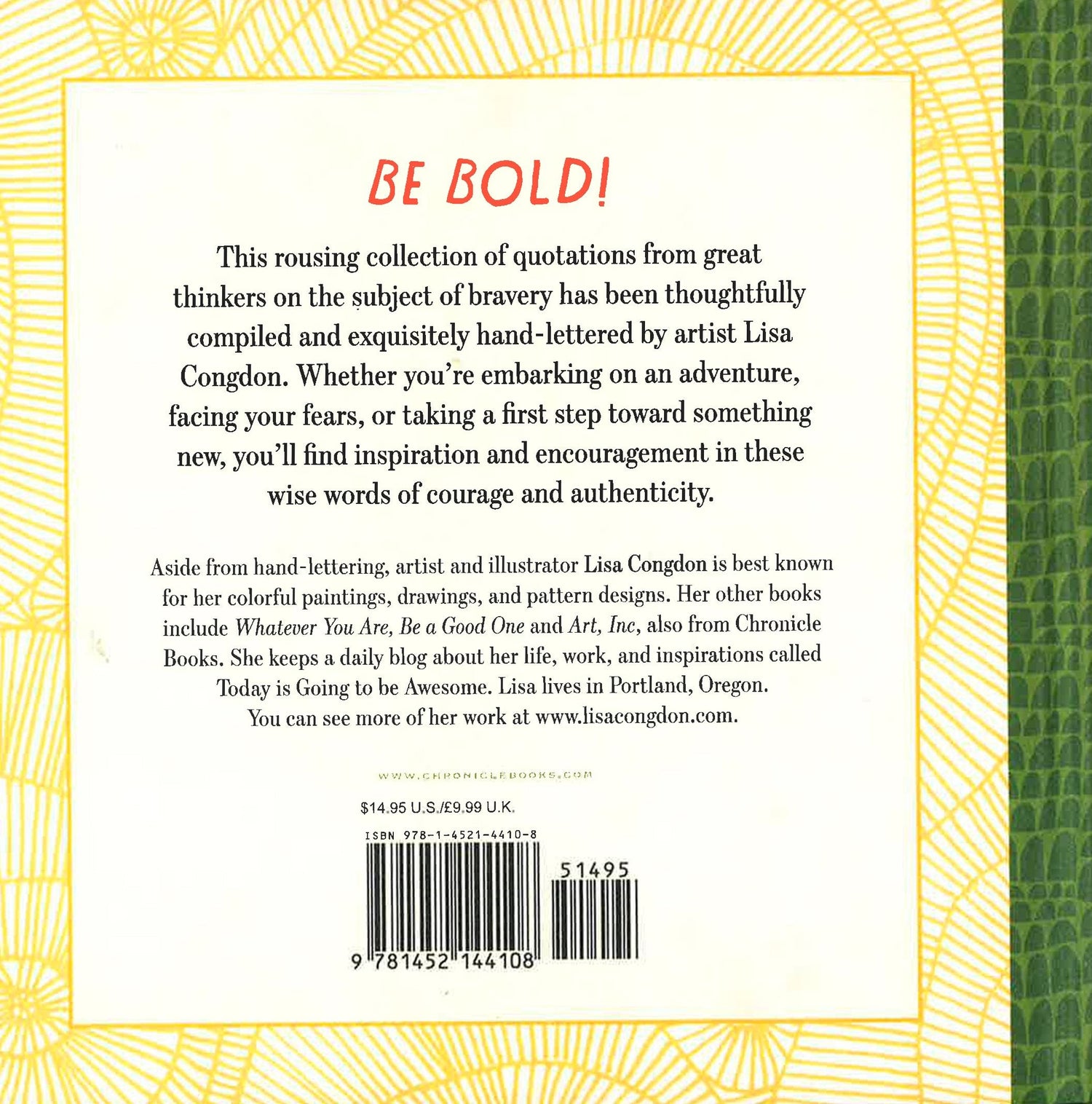 A treasure trove of inspiring quotations in the tradition of the bestselling Whatever You Are, Be a Good One, this new volume from beloved author and artist Lisa Congdon gathers rousing wisdom from history's great minds on how to be bold, stay strong, and take courage. Congdon lends her signature style of = brilliant hand lettering to sage advice on such subjects as perseverance ("If you fell down yesterday, stand up today"--HG Wells), authenticity ("What should I be but just what I am?"--Edna St. Vincent Millay), and confronting fear ("Not everything that is faced can be changed, but nothing can be changed until it is faced"--James Baldwin). Filled with uplifting reminders to seize the day, Fortune Favors the Brave demonstrates that when embarking on a new adventure, the right words of encouragement can be a priceless gift.