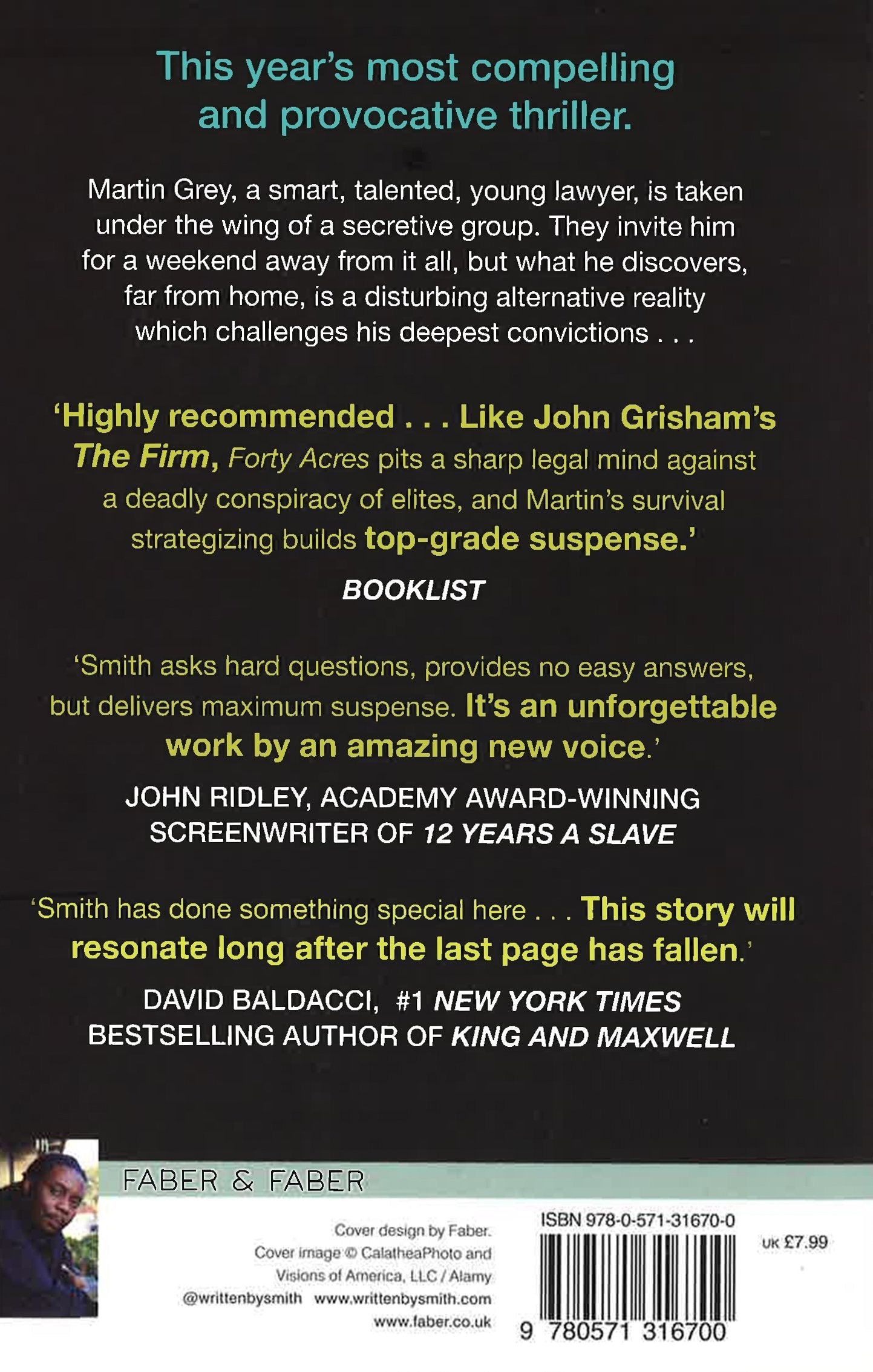 Winner of the NAACP Image Award for Outstanding Literary Work - Debut Author 'Amazing and unique.' WHOOPI GOLDBERG 'Like Grisham's The Firm (1991), Forty Acres pits a sharp legal mind against a deadly conspiracy of elites ... Highly recommended.' BOOKLIST Martin Grey, a smart, talented. young lawyer working out of a storefront in Queens, is taken under the wing of a secretive group made up of America's most powerful, wealthy, and esteemed black men. He's dazzled by what they have accomplished, and they seem to think he has the potential to be one of them They invite him for a weekend away from it all - no wives, no cell phones, no talk of business. But what he discovers, far from home, is a disturbing alternative reality which challenges his deepest convictions... A novel of rage and compassion, trust and betrayal, Forty Acres is the story of one man's desperate attempt to escape the clutches of a terrifying new moral order.