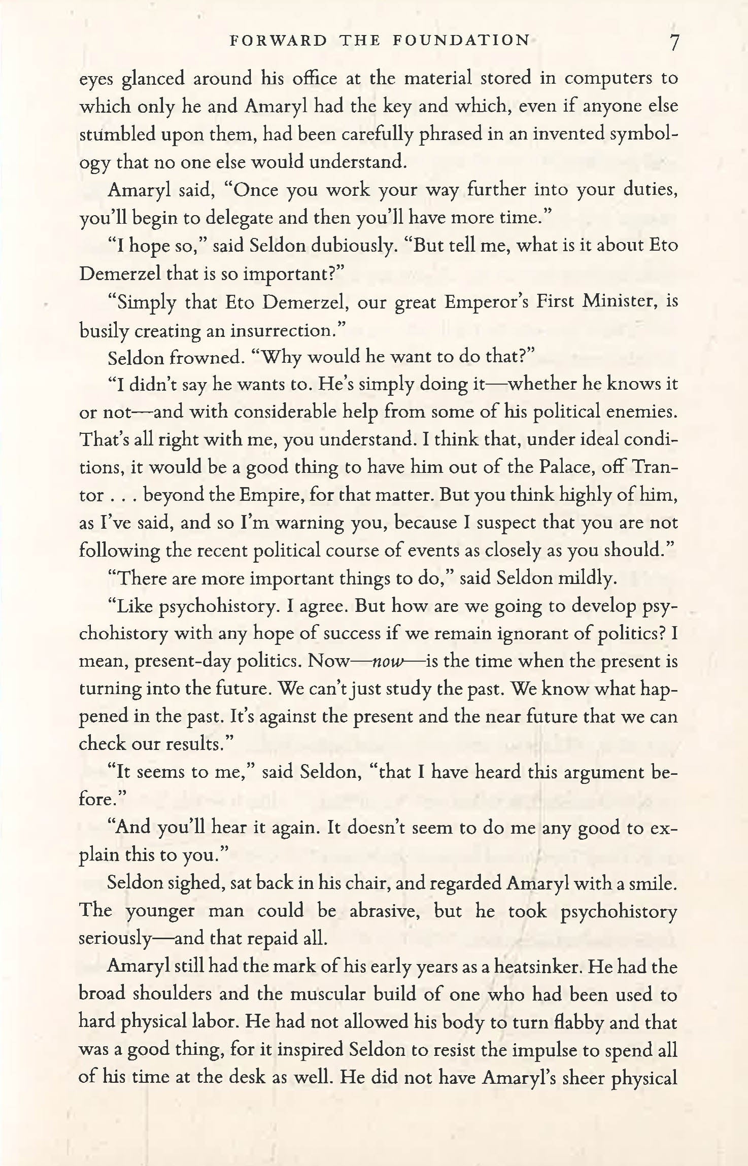 Among those seeking to turn psychohistory into the greatest weapon known to man are a populist political demagogue, the weak-willed Emperor Cleon I, and a ruthless militaristic general. In his last act of service to humankind, Hari Seldon must somehow save his life's work from their grasp as he searches for his true heirs―a search that begins with his own granddaughter and the dream of a new Foundation.