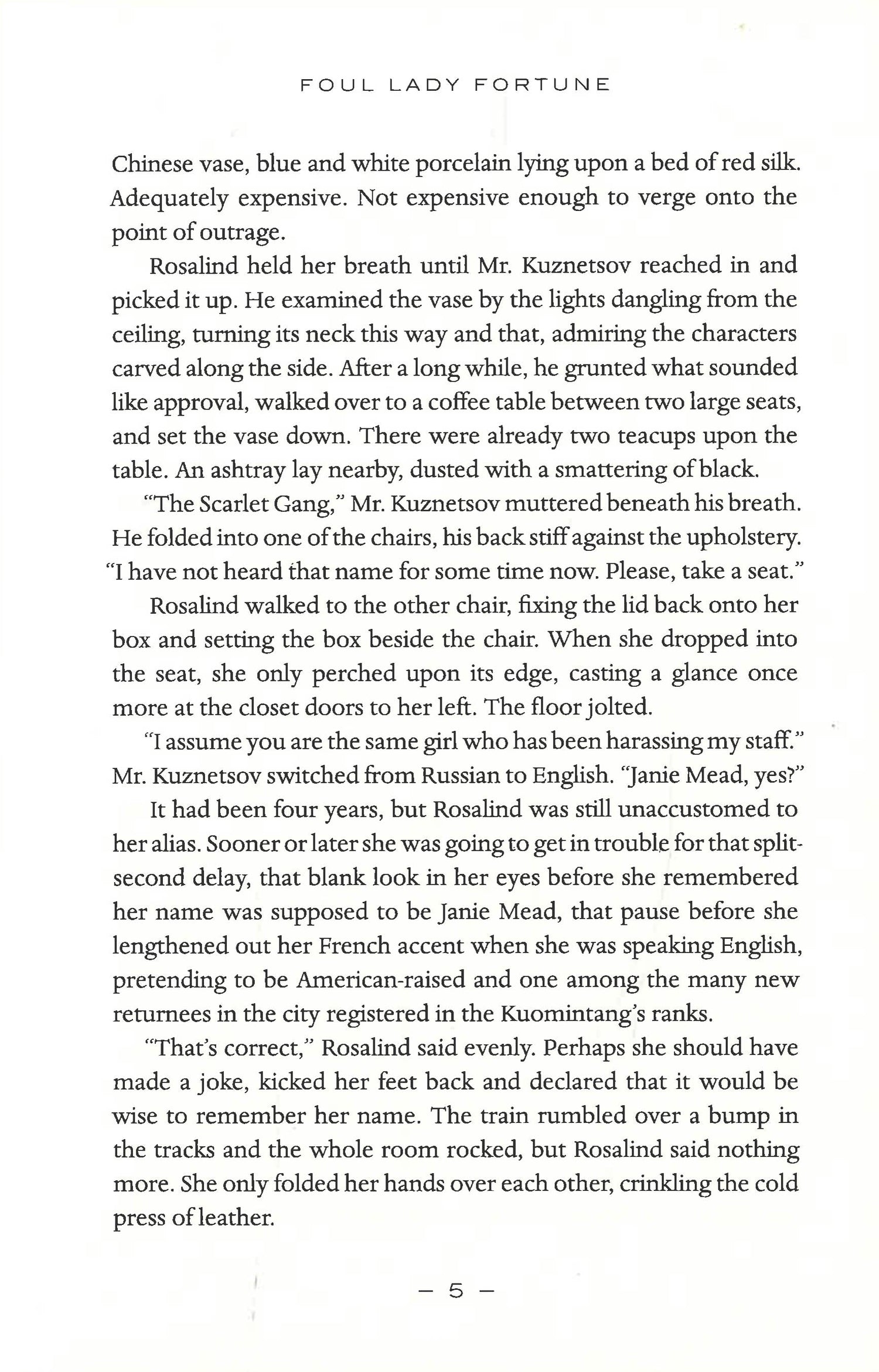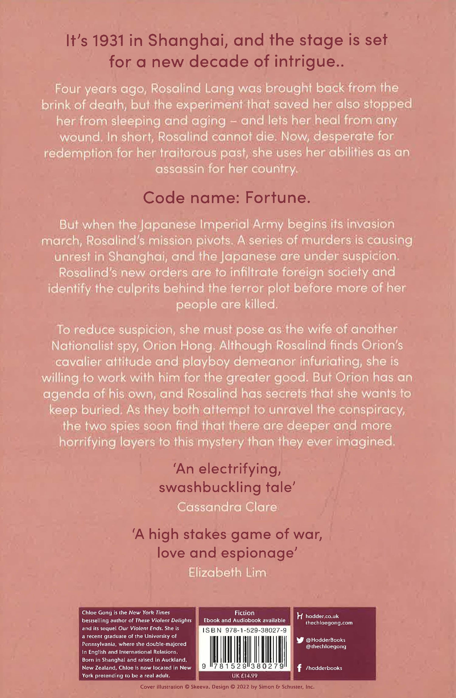 To reduce suspicion, she must pose as the wife of another Nationalist spy, Orion Hong. Although Rosalind finds Orion's cavalier attitude and playboy demeanour infuriating, she is willing to work with him for the greater good. But Orion has an agenda of his own, and Rosalind has secrets that she wants to keep buried. As they both attempt to unravel the conspiracy, the two spies soon find that there are deeper and more horrifying layers to this mystery than they ever imagined.