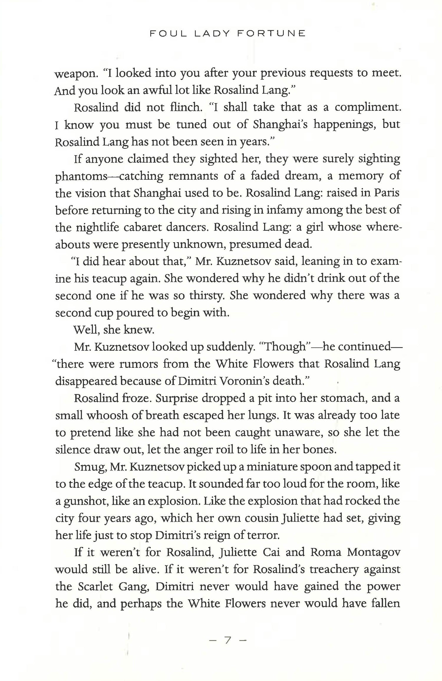 But when the Japanese Imperial Army begins its invasion march, Rosalind's mission pivots. A series of murders is causing unrest in Shanghai, and the Japanese are under suspicion. Rosalind's new orders are to infiltrate foreign society and identify the culprits behind the terror plot before more of her people are killed.