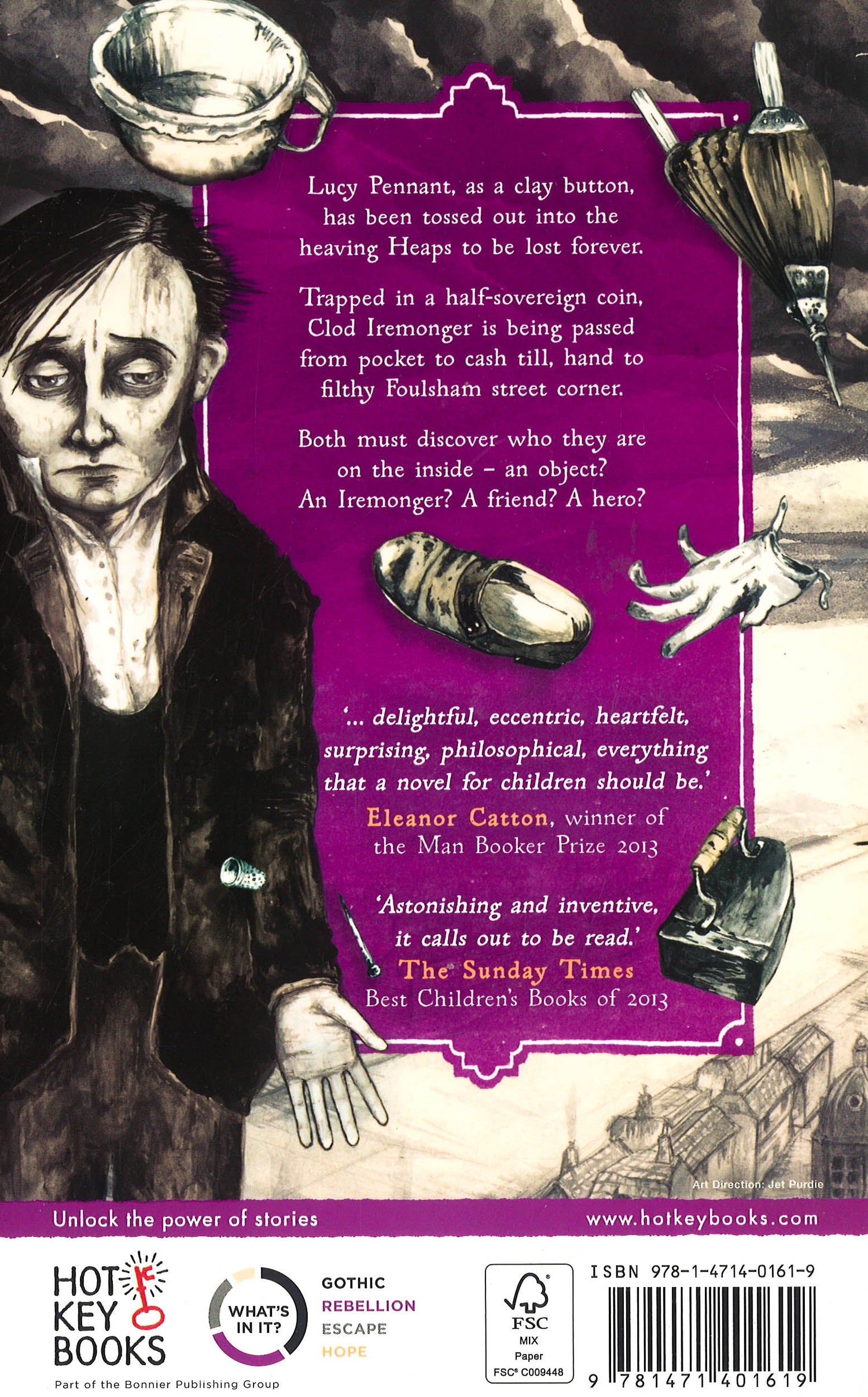 Roald Dahl by way of Charles Dickens' - Vox.comDark, gothic and delightfully macabre, the Iremonger family return...Foulsham, London's great filth repository, is bursting at the seams. The walls that keep the muck in are buckling, rubbish is spilling over the top, back into the city that it came from. In the Iremonger family offices, Grandfather Umbitt Iremonger broods: in his misery and fury at the people of London, he has found a way of making everyday objects assume human shape, and turning real people into objects.Abandoned in the depths of the Heaps, Lucy Pennant has been rescued by a terrifying creature, Binadit Iremonger - more animal than human. She is desperate and determined to find Clod. But unbeknownst to her, Clod has become a golden sovereign and is 'lost'. He is being passed as currency from hand to hand all around Foulsham, and yet everywhere people are searching for him, desperate to get hold of this dangerous Iremonger, who, it is believed, has the power to bring the mighty Umbitt down.But all around the city, things, everyday things, are twitching into life...