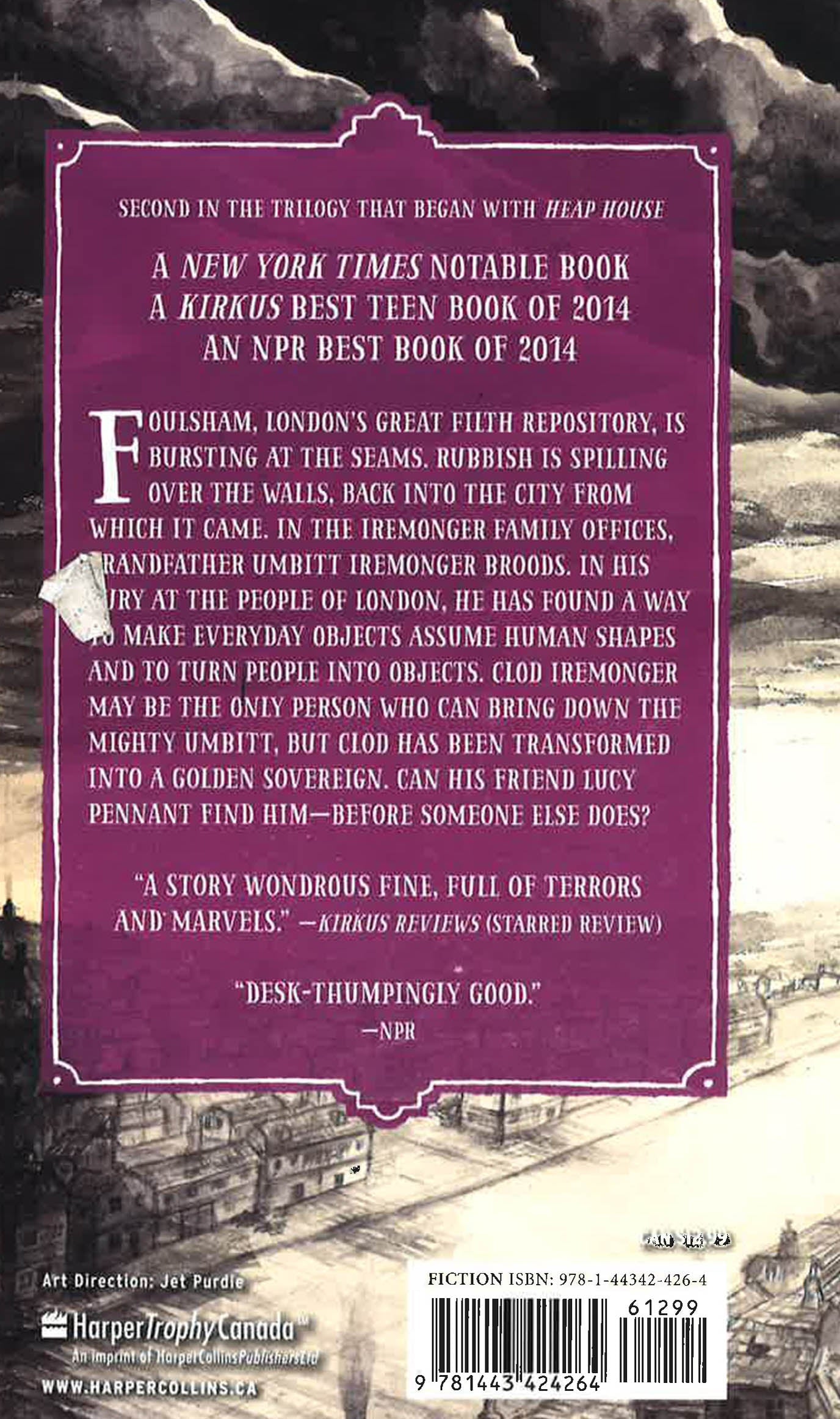 Foulsham, London's great filth repository, is bursting at the seams. The walls that keep the muck inside are buckling, and rubbish is spilling over the top, back into the city from which it came. In the Iremonger family offices, Grandfather Umbitt Iremonger broods. In his misery and fury at the people of London, he has found a way to make everyday objects assume human shapes-and to turn people into objects.