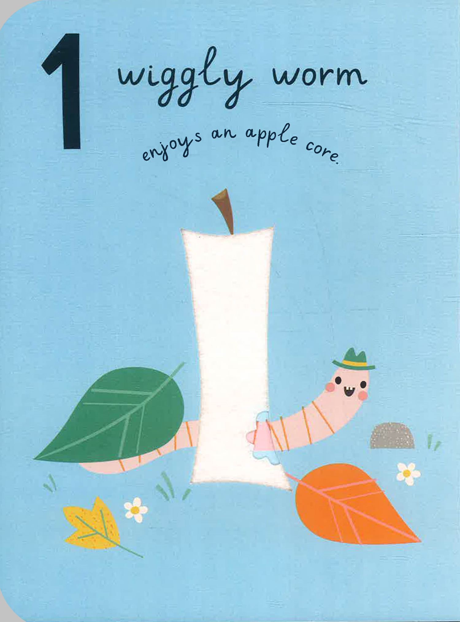 Meet the forest friends in this beautiful book, with soft and colorful felt areas to explore. Practice counting from 1 to 10 with the wiggly worms and buzzing bees in this book, as you count the woodland creatures on every page. Intricate holes in the felt areas increase one-by-one throughout the book, reinforcing the counting activity.