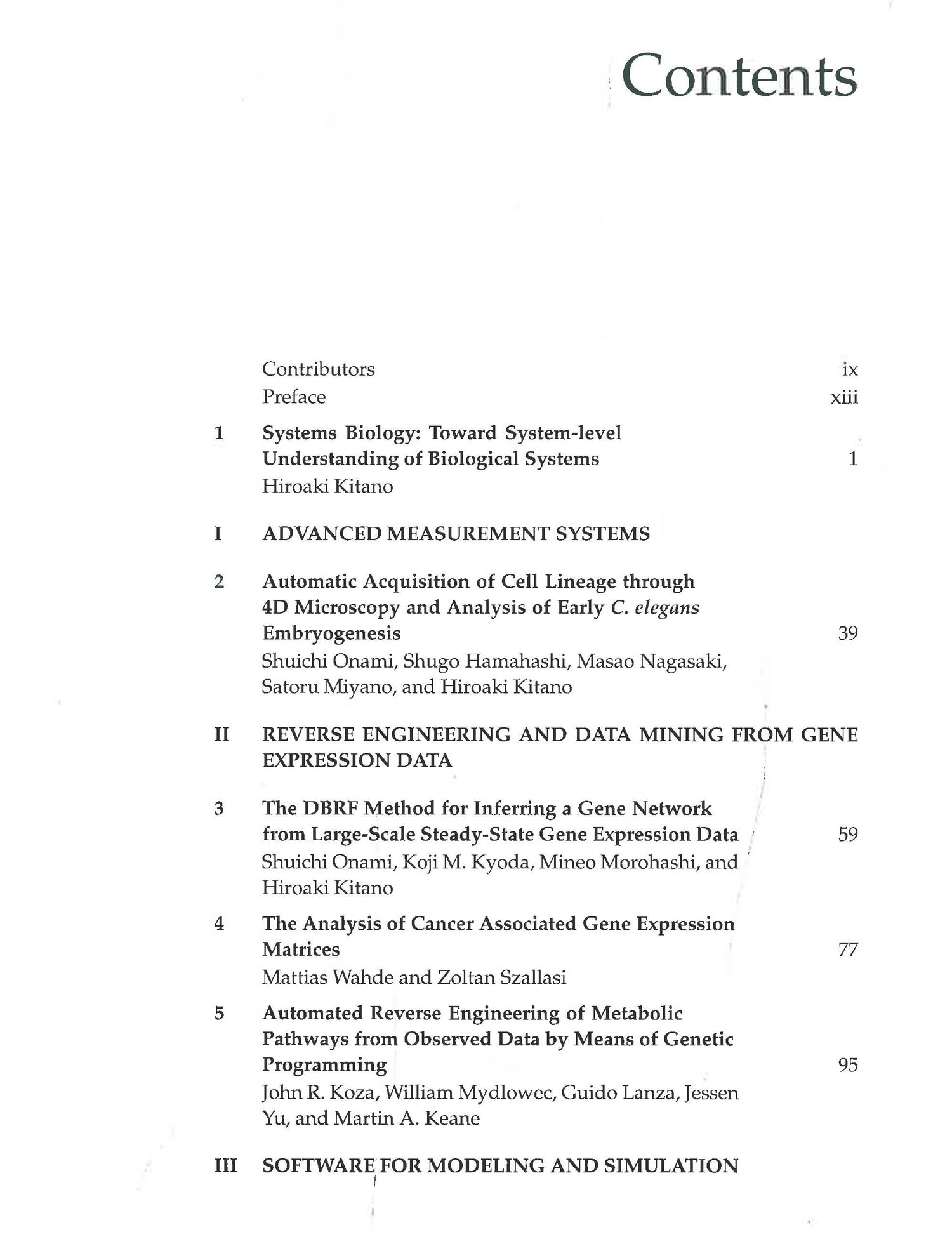 An overview of the methodologies and techniques of the emerging field of systems biology. The emerging field of systems biology involves the application of experimental, theoretical, and modeling techniques to the study of biological organisms at all levels, from the molecular, through the cellular, to the behavioral. Its aim is to understand biological processes as whole systems instead of as isolated parts. Developments in the field have been made possible by advances in molecular biology--in particular, new technologies for determining DNA sequence, gene expression profiles, protein-protein interactions, and so on. Foundations of Systems Biology provides an overview of the state of the art of the field. The book covers the central topics of systems biology: comprehensive and automated measurements, reverse engineering of genes and metabolic networks from experimental data, software issues, modeling and simulation, and system-level analysis.