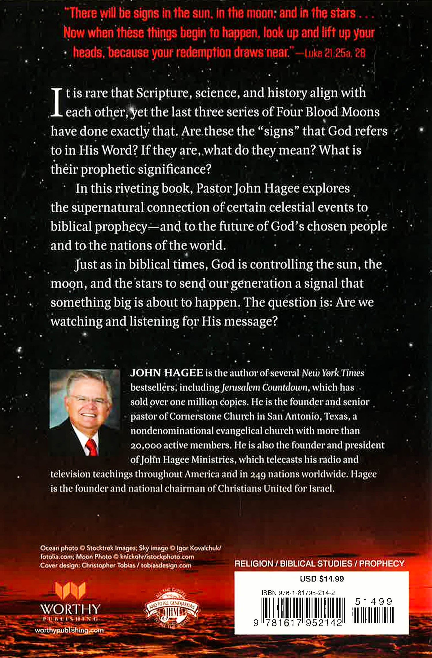 "...There will be signs in the sun, in the moon, and in the stars...Now when these things begin to happen, look up and lift up your heads, because your redemption draws near." Luke 21:25a, 28 It is rare that Scripture, science, and history align with each other, yet the last three series of Four Blood Moons have done exactly that. Are these the "signs" that God refers to in His Word? If they are, what do they mean? What is their prophetic significance?
