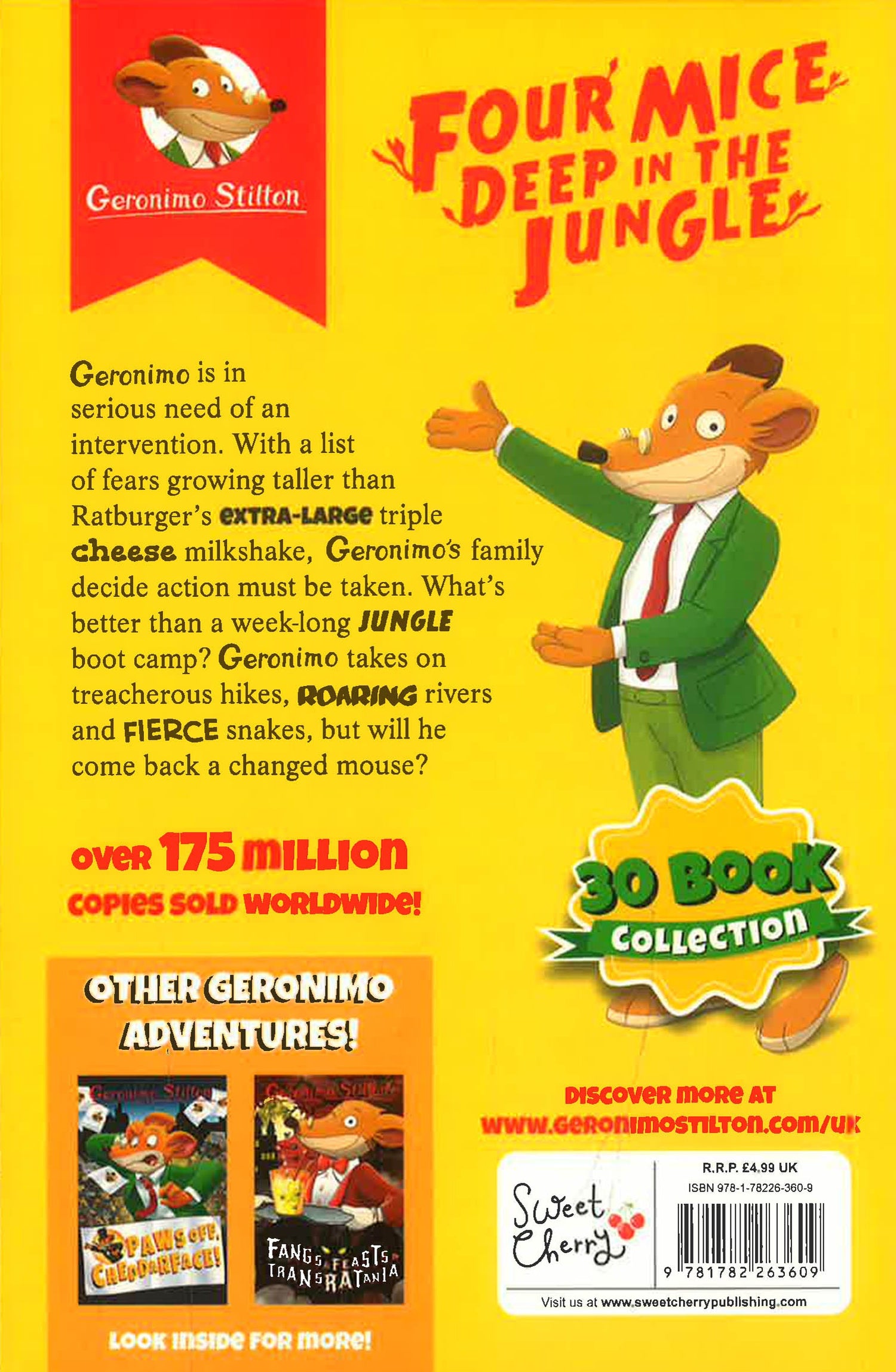 Geronimo is in serious need of an intervention. With a list of fears growing taller than Ratburger's extra-large triple cheese milkshake, Geronimo's family decide action must be taken. What better way to face your fears than through a week-long jungle boot?
