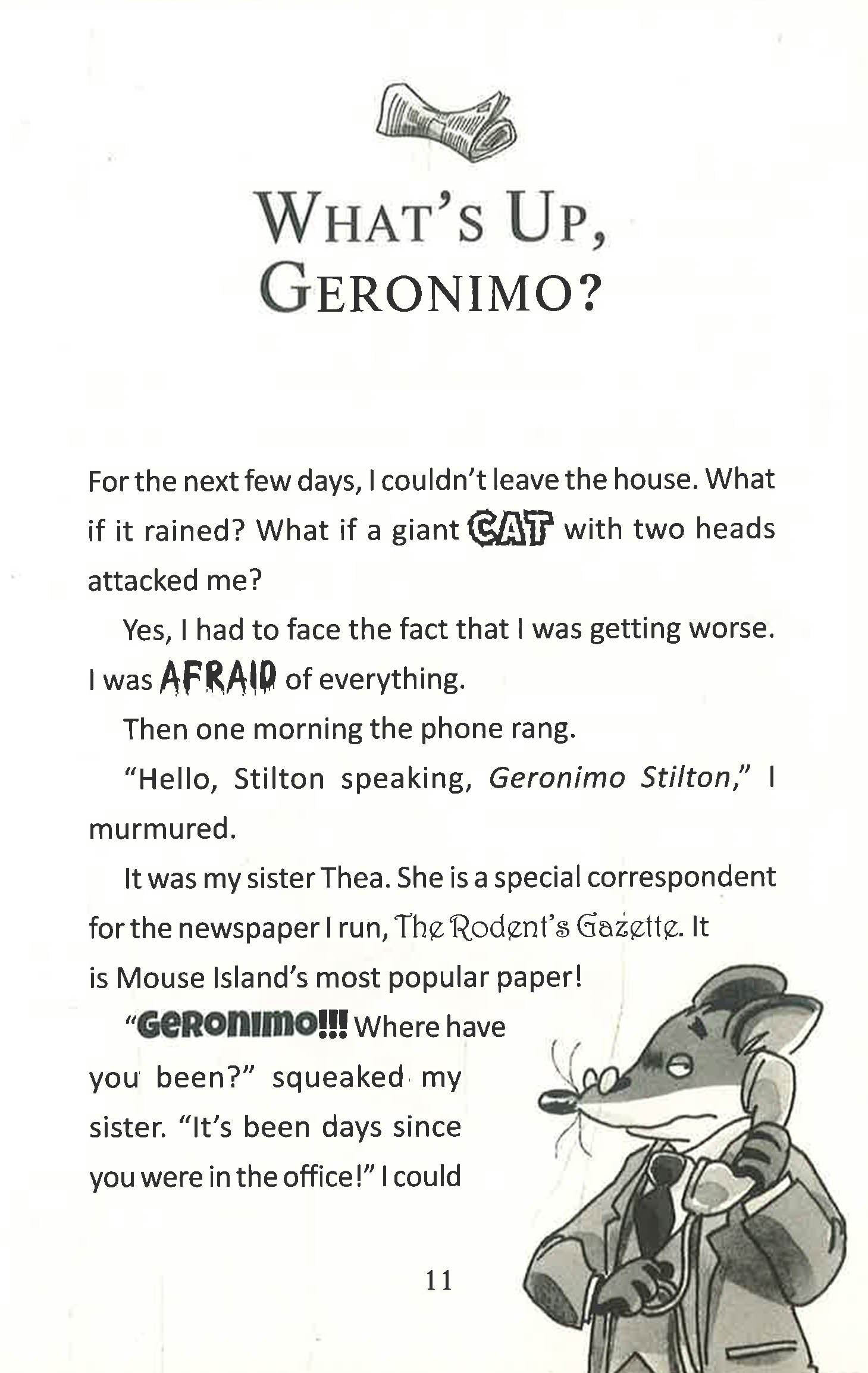 Meet Geronimo Stilton (The Indiana Jones of the Mouse world!) the famouse journalist, who although is of the quiet (and frightened way too easily) mousey kind, always finds himself in THE MOST ridiculously terrifying adventures one could only imagine, and all just to find the next hot story for his newspaper, The Rodent's Gazette!