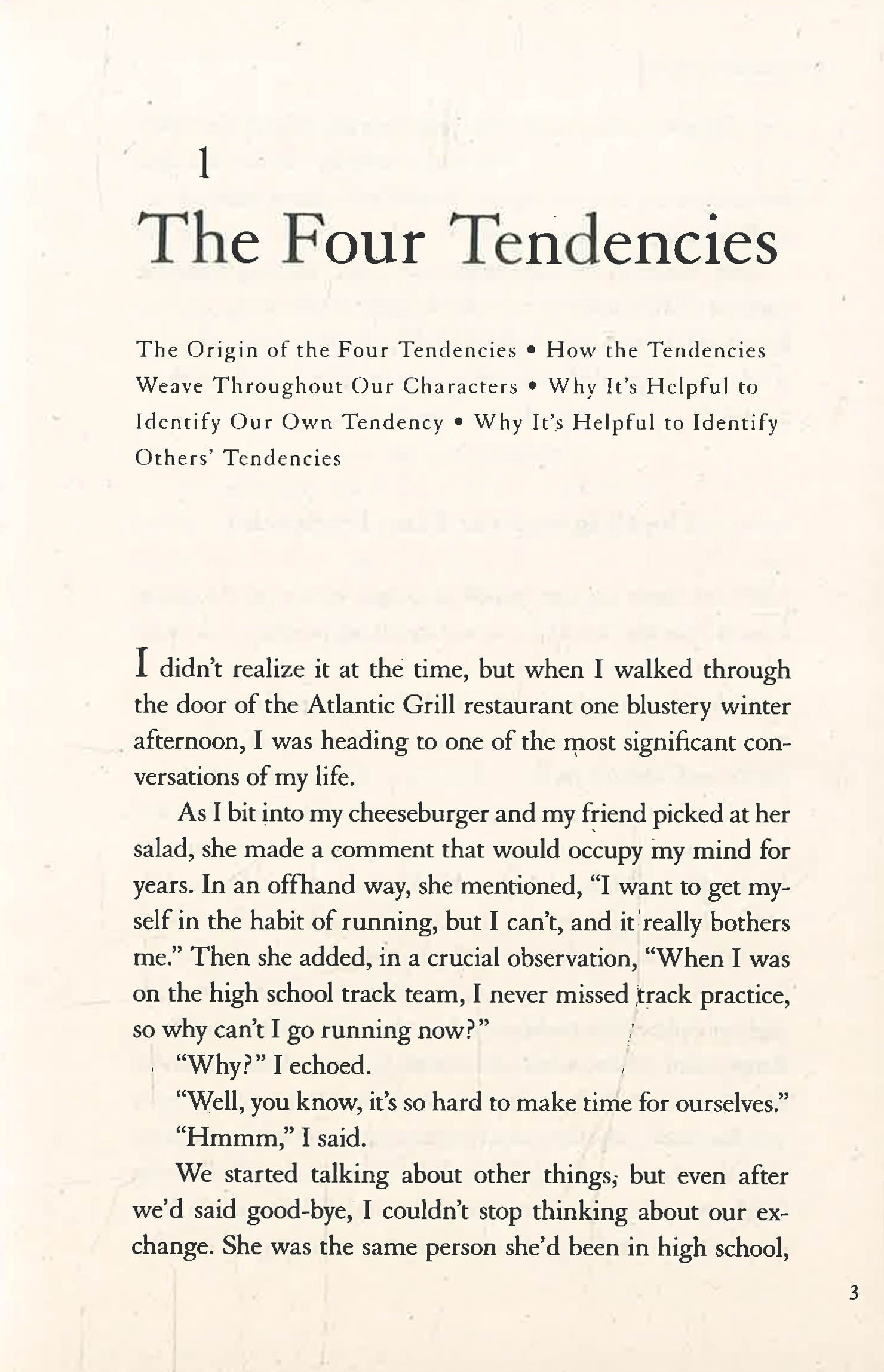 She discovered that based on their answer, people fit into Four Tendencies: Upholders, Questioners, Obligers, and Rebels. Our Tendency shapes every aspect of our behaviour, so using this framework allows us to make better decisions, meet deadlines, suffer less stress, and engage more effectively.