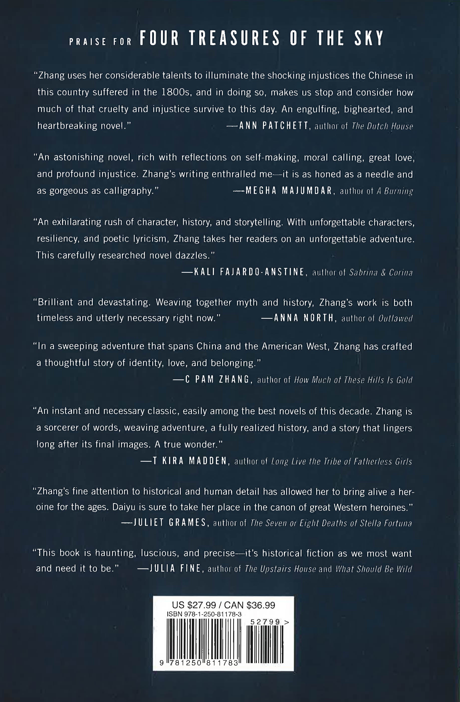 At once a literary tour de force and a groundbreaking work of historical fiction, Four Treasures of the Sky announces Jenny Tinghui Zhang as an indelible new voice. Steeped in untold history and Chinese folklore, this novel is a spellbinding feat.