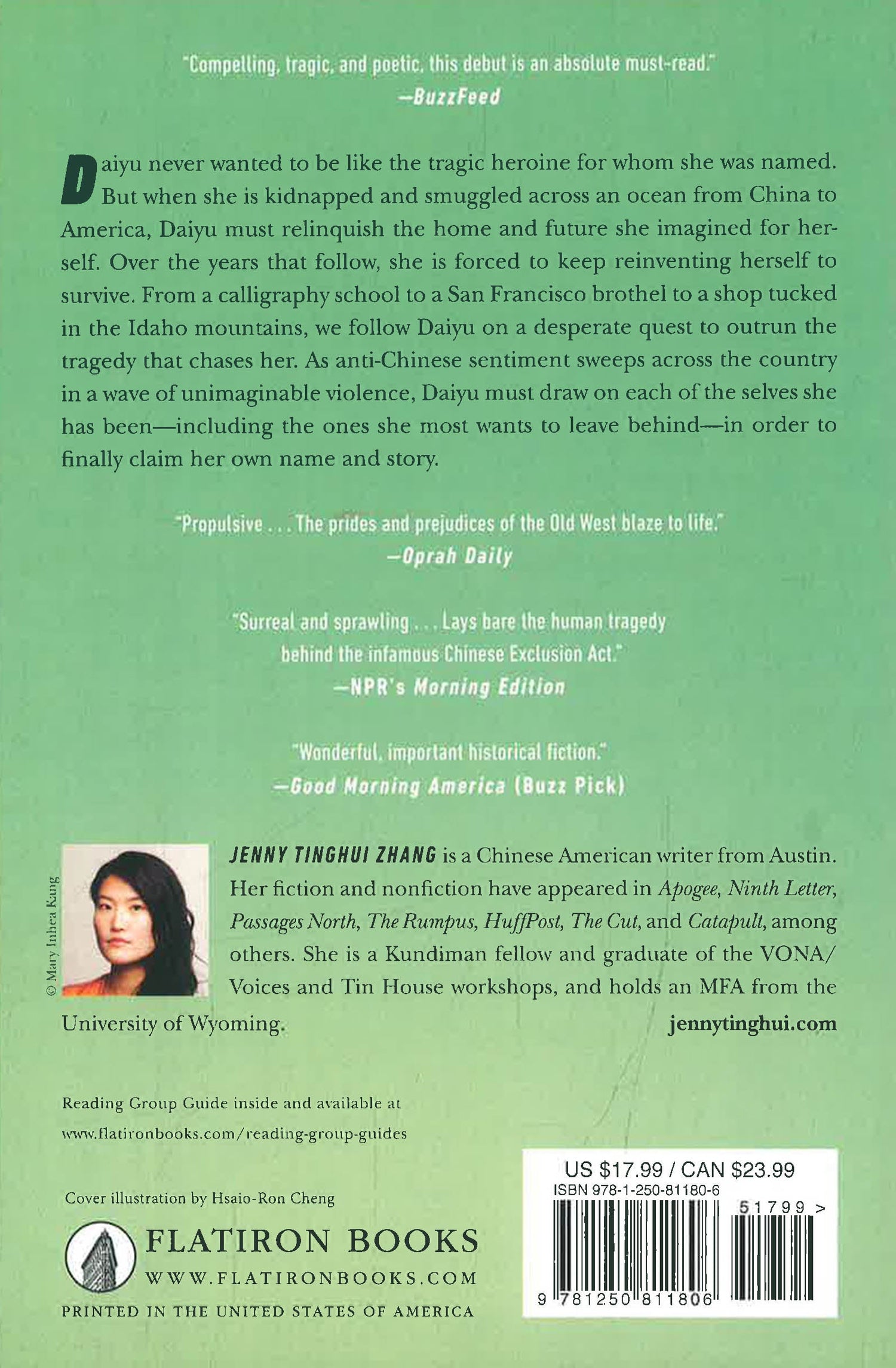 Daiyu never wanted to be like the tragic heroine for whom she was named, revered for her beauty and cursed with heartbreak. But when she is kidnapped and smuggled across an ocean from China to America, Daiyu must relinquish the home and future she imagined for herself. Over the years that follow, she is forced to keep reinventing herself to survive. From a calligraphy school, to a San Francisco brothel, to a shop tucked into the Idaho mountains, we follow Daiyu on a desperate quest to outrun the tragedy that chases her. As anti-Chinese sentiment sweeps across the country in a wave of unimaginable violence, Daiyu must draw on each of the selves she has been--including the ones she most wants to leave behind--in order to finally claim her own name and story.