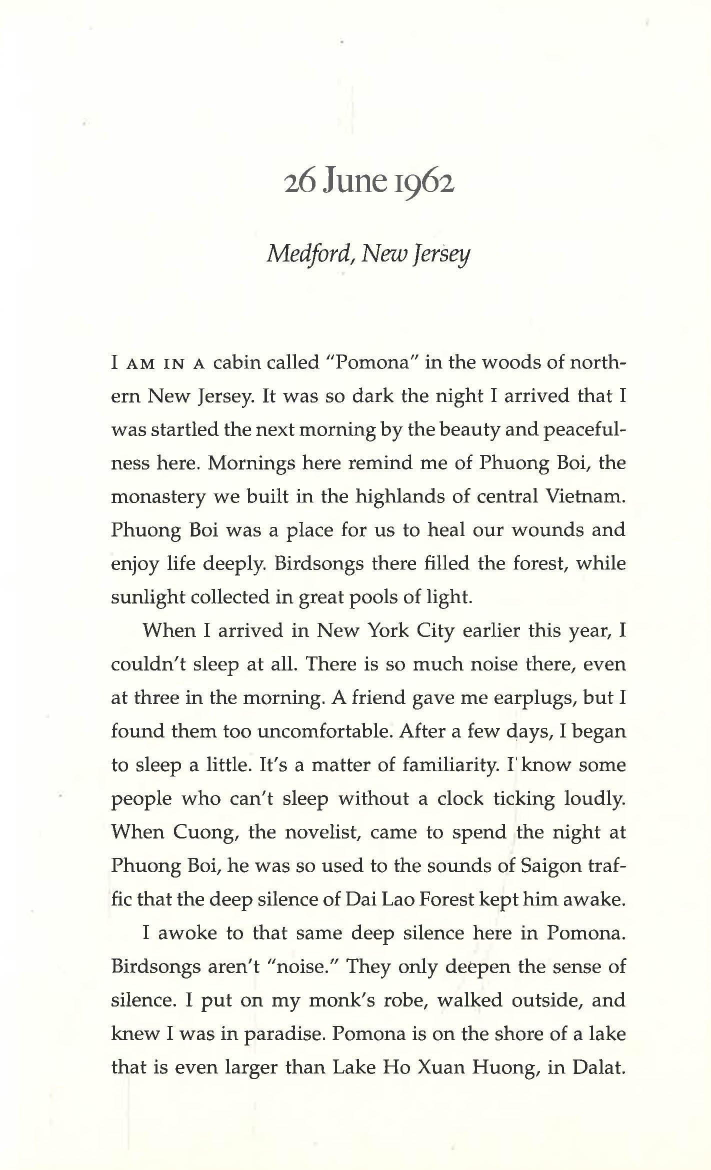 But when these journals are written, all of that is still to come. Fragrant Palm Leaves reveals a vulnerable and questioning young man, a student and teaching assistant at Princeton and Columbia Universities from 1962-1963, homesick and reflecting on the many difficulties he and his fellow monks faced at home trying to make Buddhism relevant to the people's needs. We also follow Thich Nhat Hanh as he returns to Vietnam in 1964, and helps establish the movement known as Engaged Buddhism.