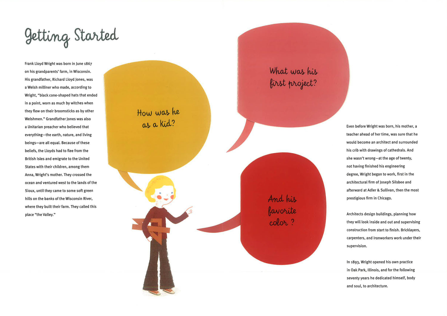 The life and work of visionary American architect Frank Lloyd Wright launches our new activity book series, Meet the Architect!, an expansion of our Meet the Artist! series. Flaps, cutouts, and pull tabs, take readers on a fascinating journey through Wright's famous works — the Solomon R. Guggenheim Museum, Fallingwater, and Taliesin, among others — and the materials and techniques he used to create them. This hands-on introduction will inspire budding architects from ages eight to eighty.
