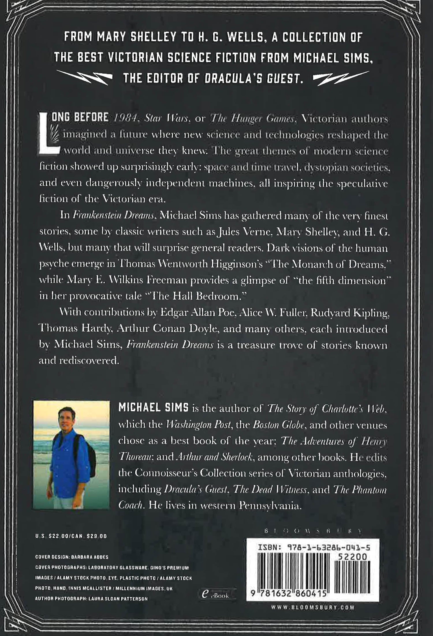 From Mary Shelley to H.G. Wells, a collection of the best Victorian science fiction from Michael Sims, the editor of Dracula's Guest.Long before 1984, Star Wars, or The Hunger Games, Victorian authors imagined a future where new science and technologies reshaped the world and universe they knew. The great themes of modern science fiction showed up surprisingly early: space and time travel, dystopian societies, even dangerously independent machines, all inspiring the speculative fiction of the Victorian era.In Frankenstein Dreams, Michael Sims has gathered many of the very finest stories, some by classic writers such as Jules Verne, Mary Shelley, and H.G. Wells, but many that will surprise general readers. Dark visions of the human psyche emerge in Thomas Wentworth Higginson's "The Monarch of Dreams," while Mary E. Wilkins Freeman provides a glimpse of ?the fifth dimension? in her provocative tale "The Hall Bedroom."With contributions by Edgar Allan Poe, Alice Fuller, Rudyard Kipling, Thomas Hardy, Arthur Conan Doyle, and many others, each introduced by Michael Sims, whose elegant introduction provides valuable literary and historical context, Frankenstein Dreams is a treasure trove of stories known and rediscovered.
