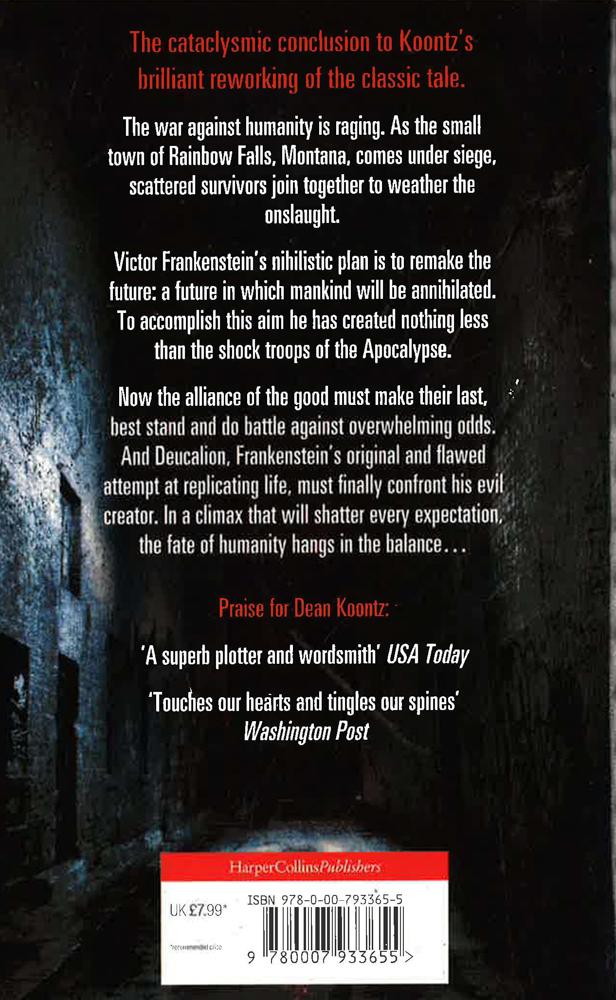 Dean Koontz's enthralling Frankenstein series has redefined the classic legend of infernal ambition and harrowing retribution for a new century and a new age. Now the master of suspense delivers an unforgettable novel that is at once a thrilling adventure in itself and a mesmerizing conclusion to his saga of the modern monsters among us. FRANKENSTEIN: THE DEAD TOWN The war against humanity is raging. As the small town of Rainbow Falls, Montana, comes under siege, scattered survivors come together to weather the onslaught of the creatures set loose upon the world. As they ready for battle against overwhelming odds, they will learn the full scope of Victor Frankenstein's nihilistic plan to remake the future--and the terrifying reach of his shadowy, powerful supporters. Now the good will make their last, best stand. In a climax that will shatter every expectation, their destinies and the fate of humanity hang in the balance.