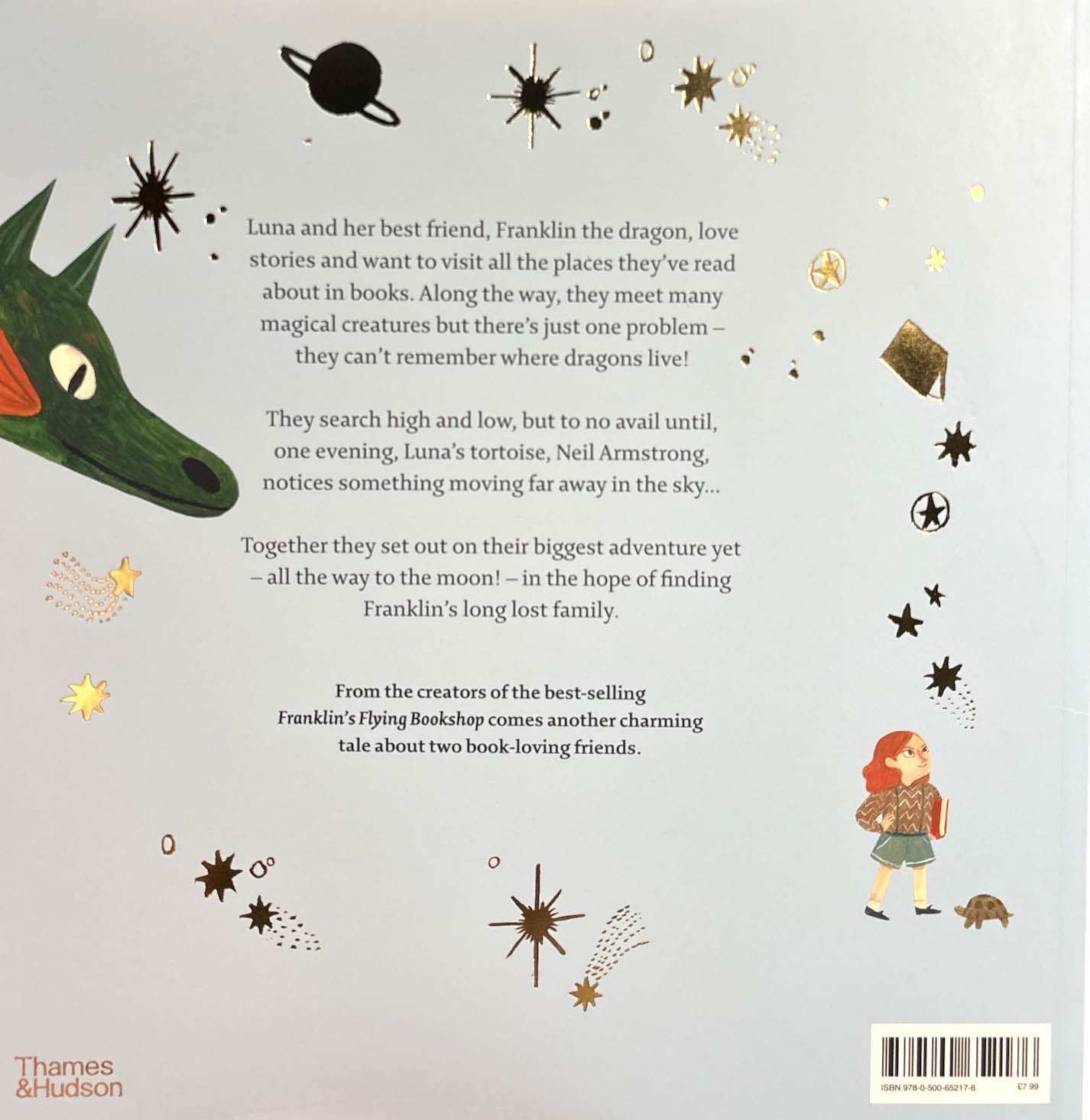 Luna and her best friend, Franklin the dragon, love stories and want to visit all the places they’ve read about in books. But for all their reading they still don’t know where dragons come from. And Franklin is now so old – 605 to be exact – he can’t remember himself! They search high and low, but to no avail. Until one evening, Luna’s tortoise, Neil Armstrong, notices something far away in the sky… The three friends set out on their biggest adventure yet – all the way to the moon – in the hope of reuniting Franklin with his long lost family.